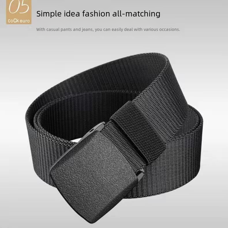 Belt cloth belt men’s lengthened plus size student youth pants belt woven nylon canvas iron-free non-magnetic security check belt