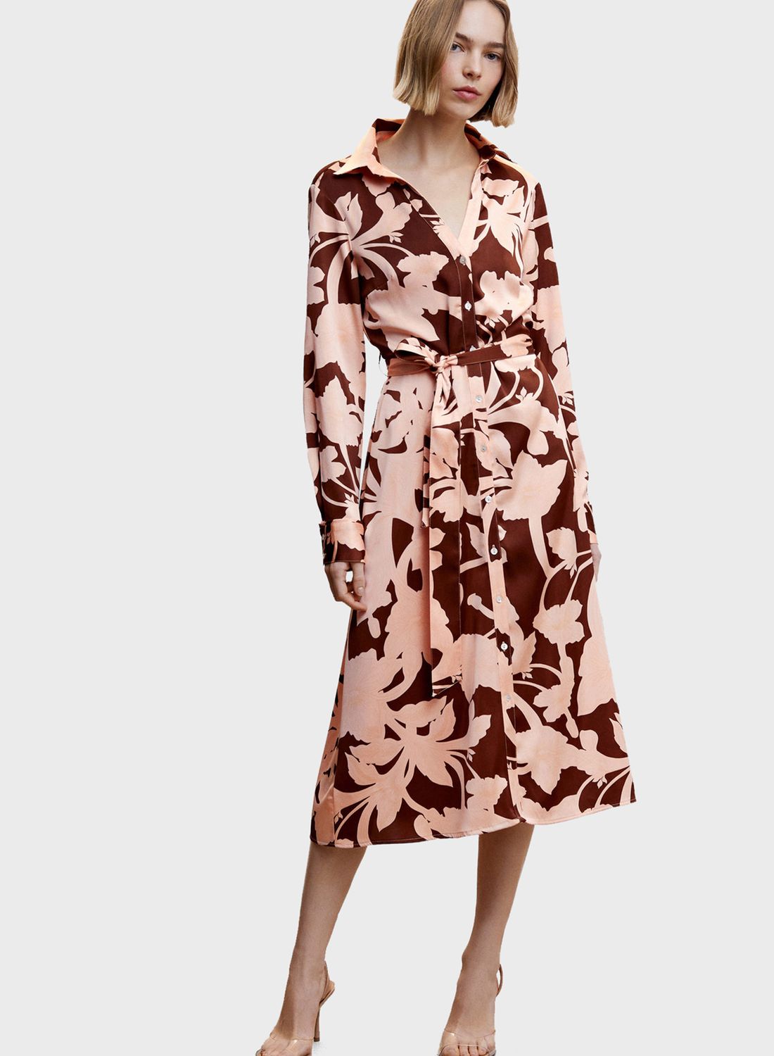 | nameOriginal | Floral Print Belted Button Down Dress |