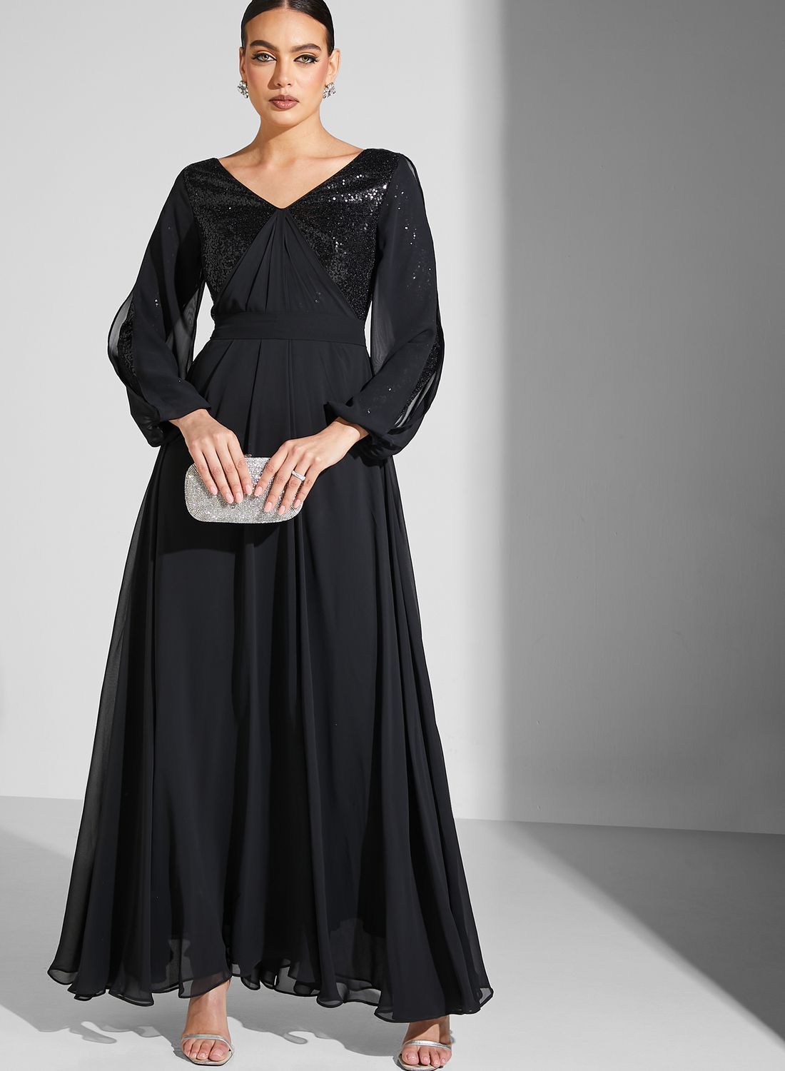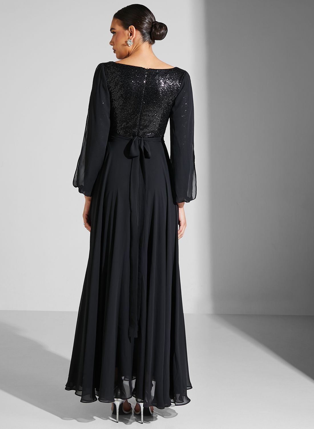 | nameOriginal | Sequin Puff Sleeve Belted Dress |