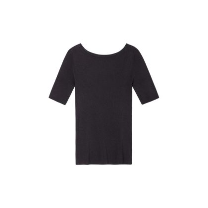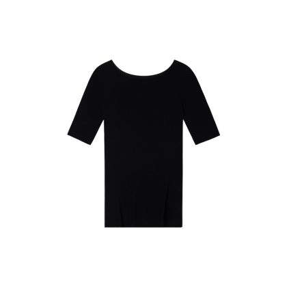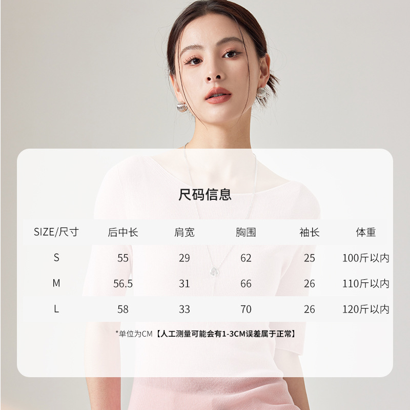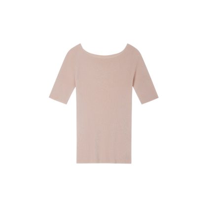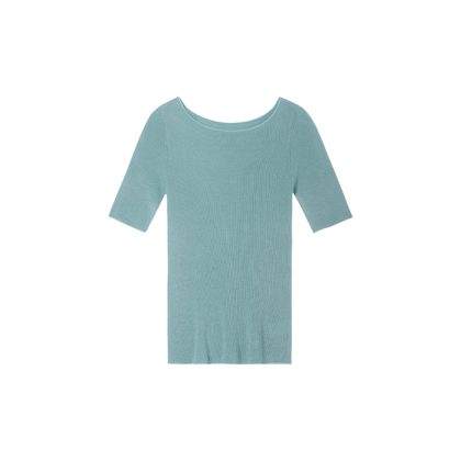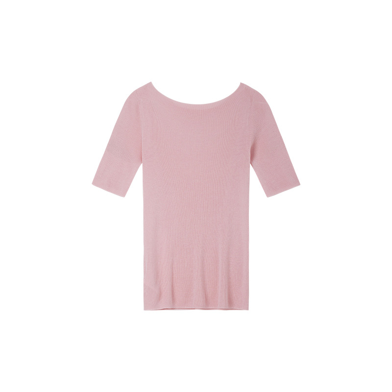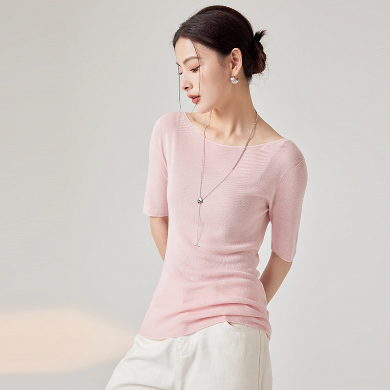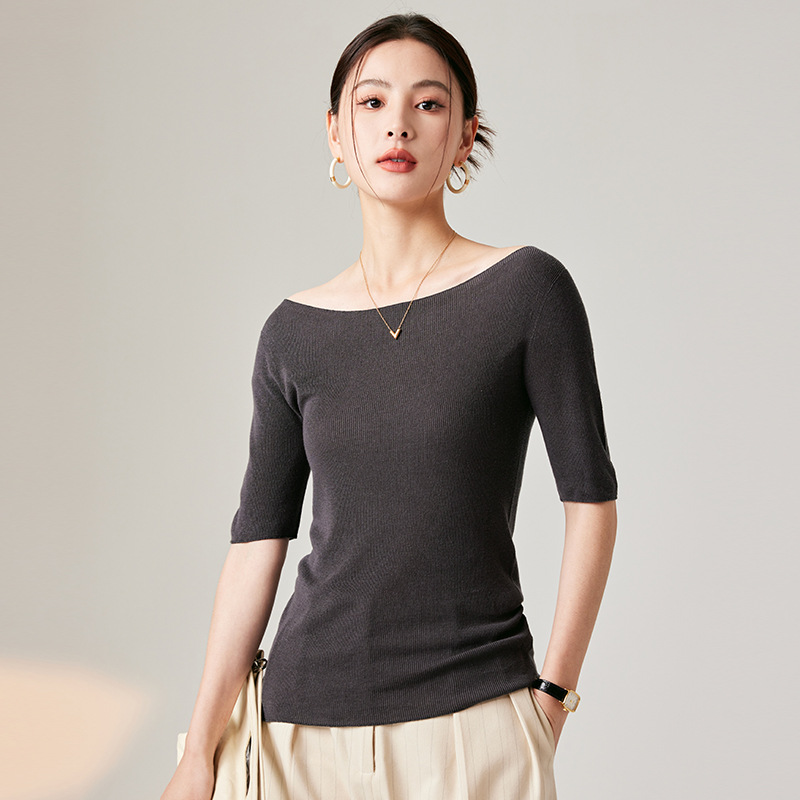 [Ben Chu] Spring and Summer 18-pin Seamless One Tencel Base Shirt Women’s One-character Collar Five-point Sleeve Thin Knitted Shirt T-shirt