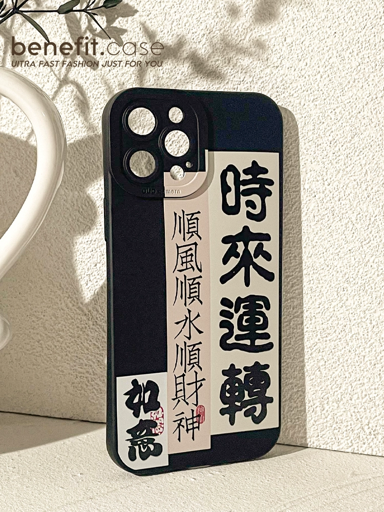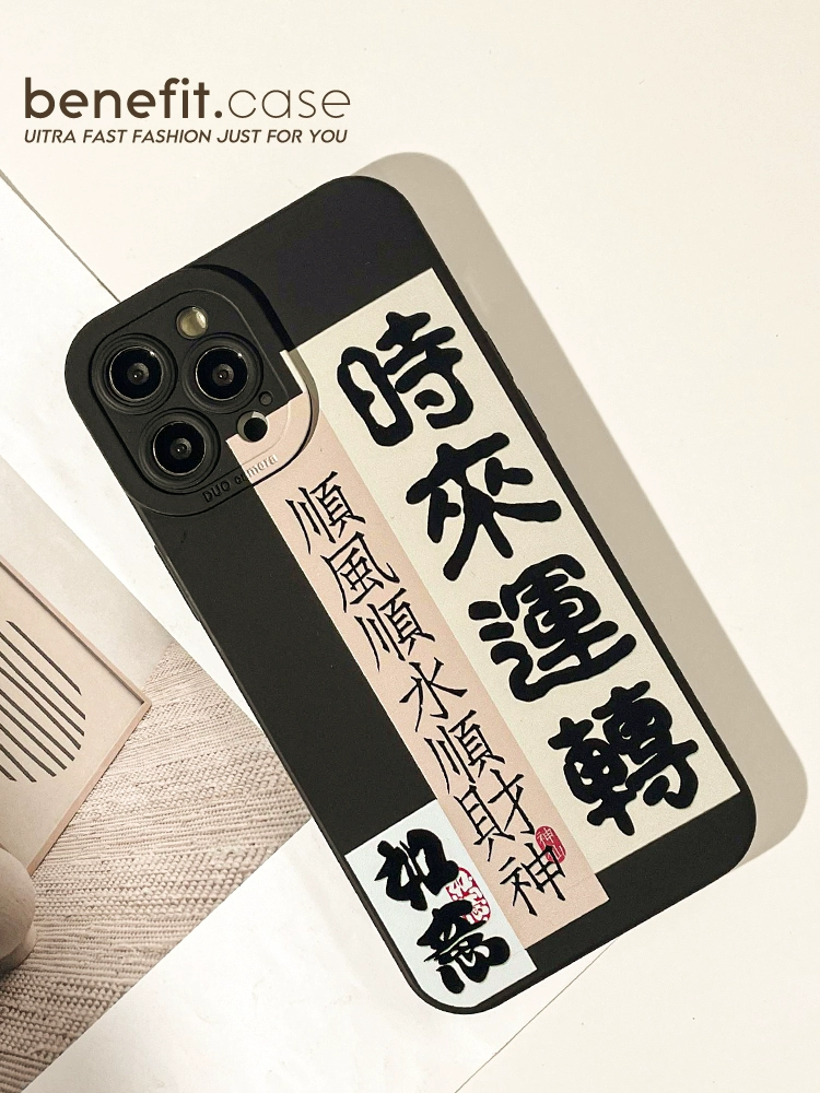 Benefit creative national style time to run label 16 applicable 15 apple 13promax mobile phone case iphone12 advanced 11 new 14promax calligraphy characters xsmax liquid silicone 8p7p