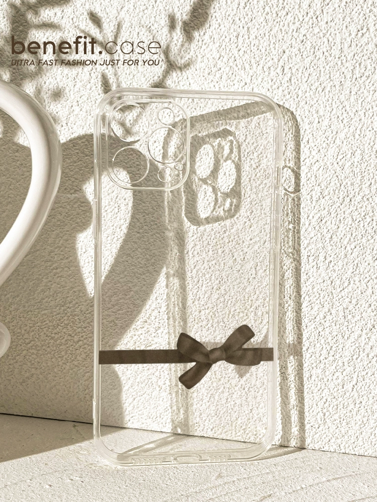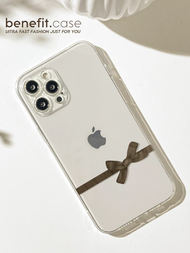 Benefit creative simple bow 16 suitable for 15 apple 13promax high-end mobile phone case iphone12mini soft 14promax set 11/xsmax female xr personality 8p7 transparent