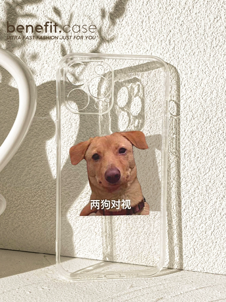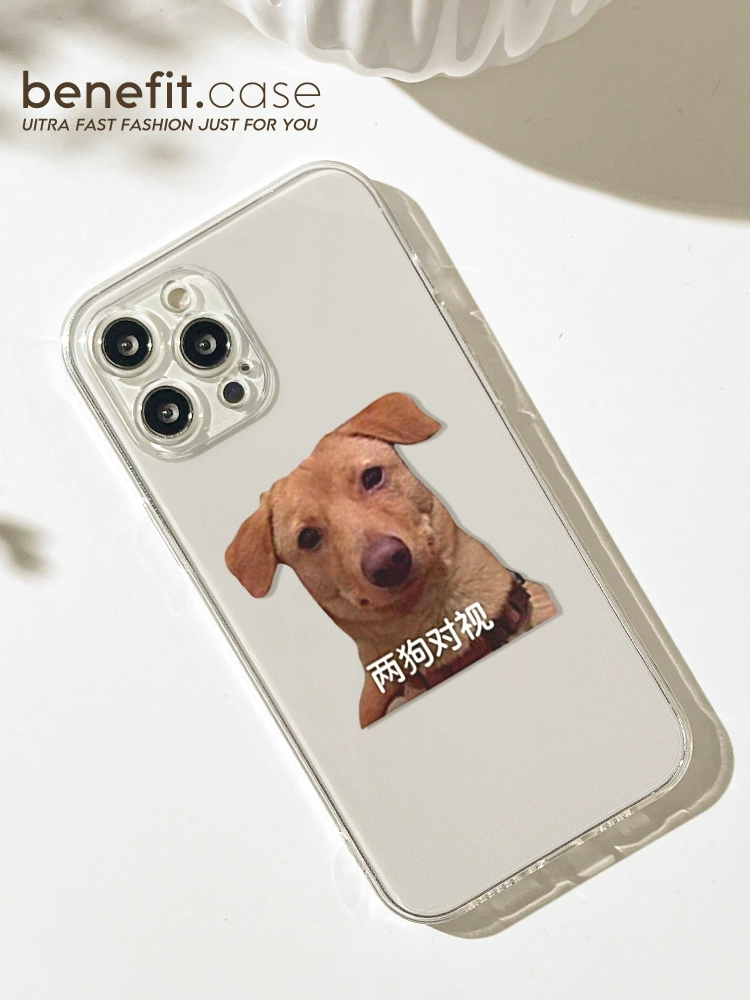 | nameOriginal | Benefit fun spoof two dogs looking at each other 16 applicable 15 apple 13 promax mobile phone case iphone 12 anti-fall 14 promax new 11 female xsmax personality creative xr transparent 8p silicone |