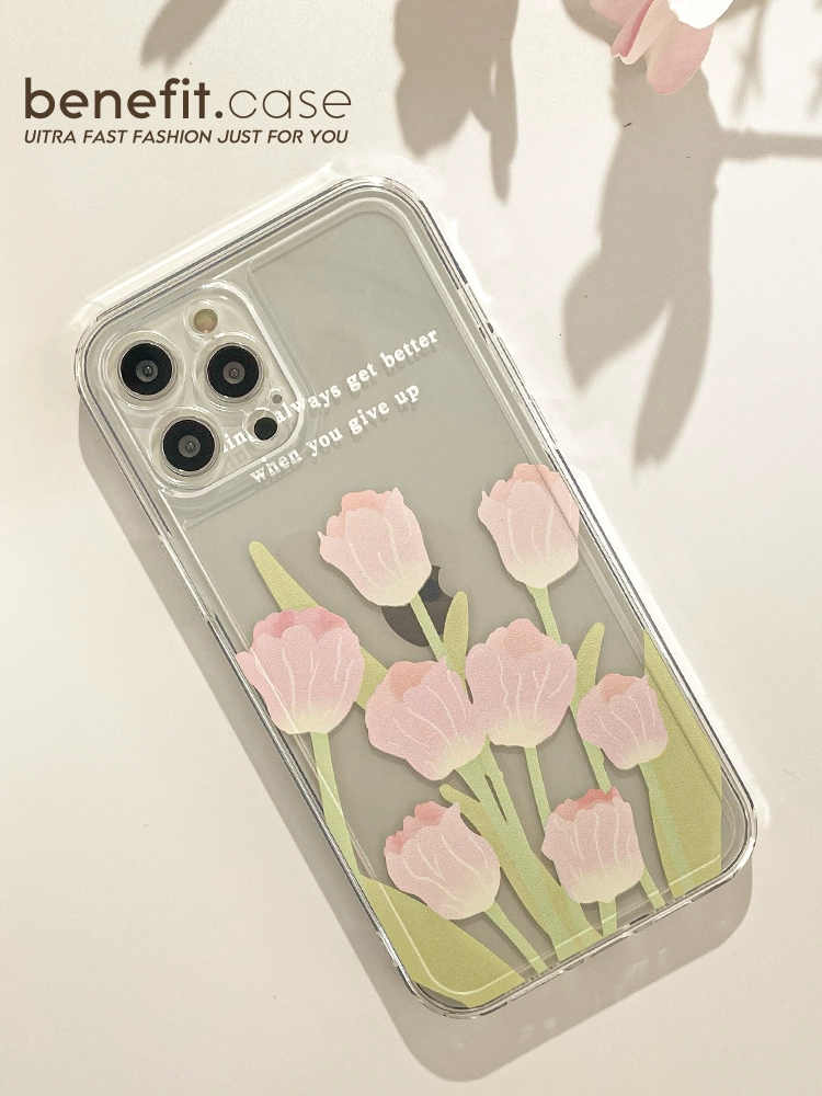| nameOriginal | Benefit Japanese and Korean Tulip English 16 applicable 15 Apple 13 promax mobile phone case simple iphone 12 soft 14 promax literary 11 female xsmax original xr transparent 8p fresh less |