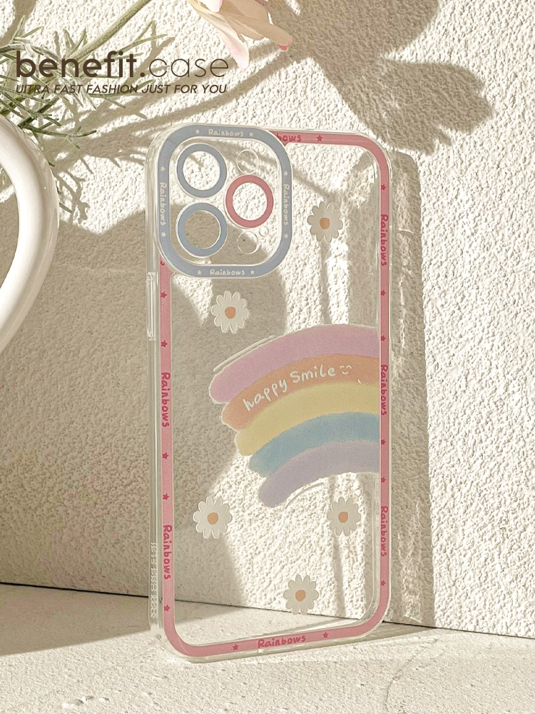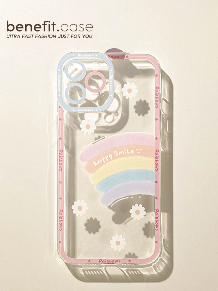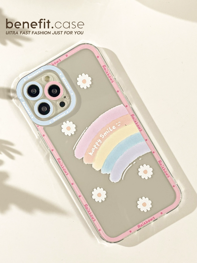 Benefit rainbow smiley flower 16 suitable for 15 apple 13promax mobile phone case iphone12mini simple ins advanced 14promax new 11xs internet celebrity xr transparent 8p7p silicone
