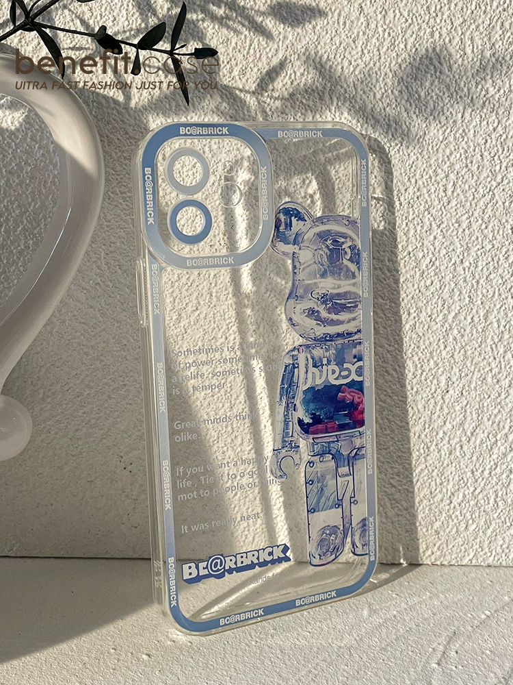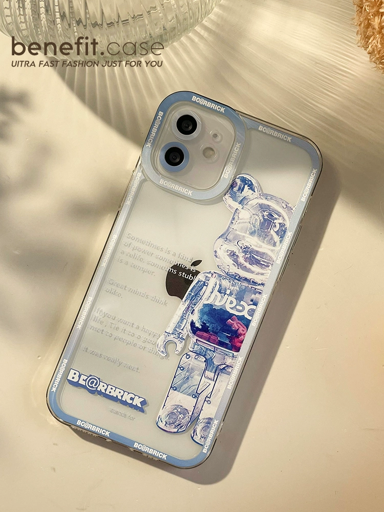 Benefit Tide Brand Creative Violence Bear Transparent Ice Blue 16 Applicable 15 Apple 13promax mobile phone case iPhone12mini soft 14promax set 11/xsmax anti -drop XR silicone 8p7