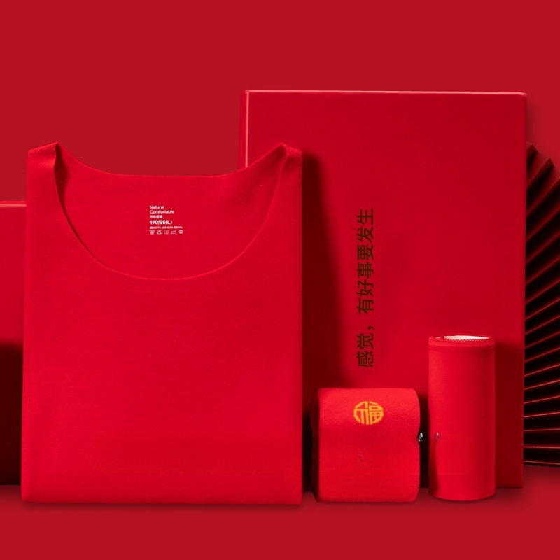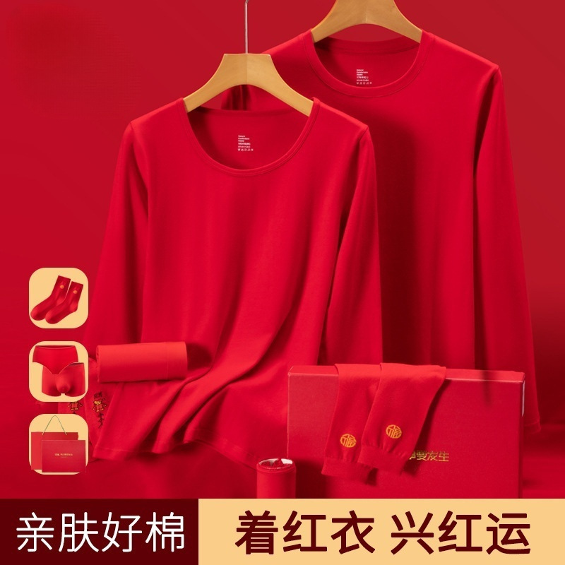 | nameOriginal | Benmingnian Big Red Underwear Hongyun Autumn Clothes and Pants for Men and Women Wedding Warm Gift Box Set |