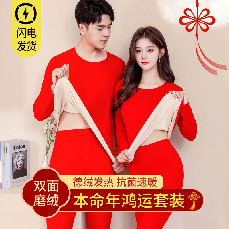 | nameOriginal | Benmingnian Big Red Wedding Thermal Underwear Men's and Women's Suit Plus Thick Velvet Trousers Winter Cotton Autumn Clothes |