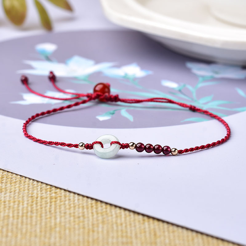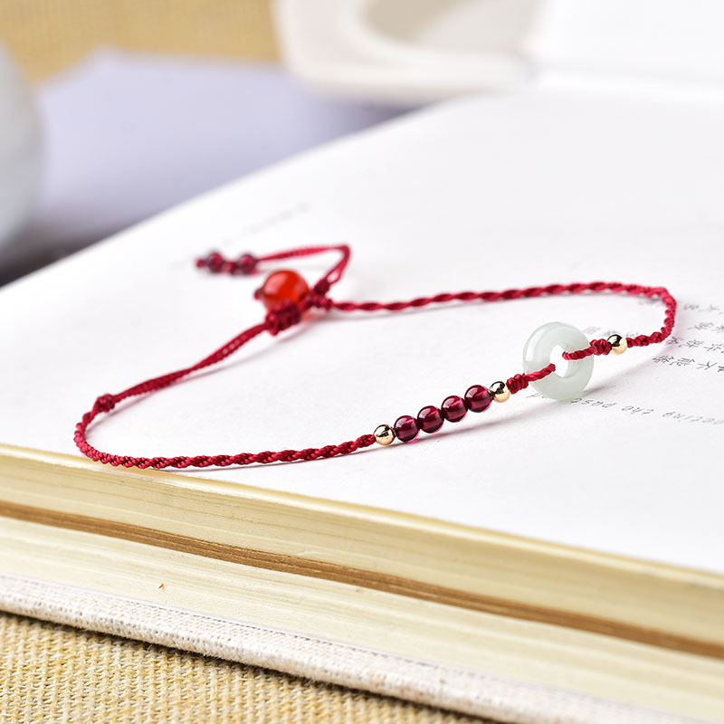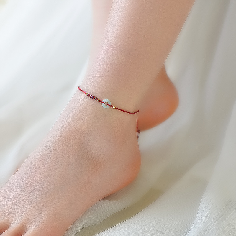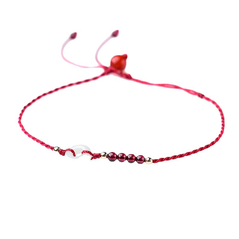 Benmingnian Red Rope Anklet Women’s Natural Garnet Jade Safe Buckle Anklet Korean Style Distinctive ins Internet Celebrity Design