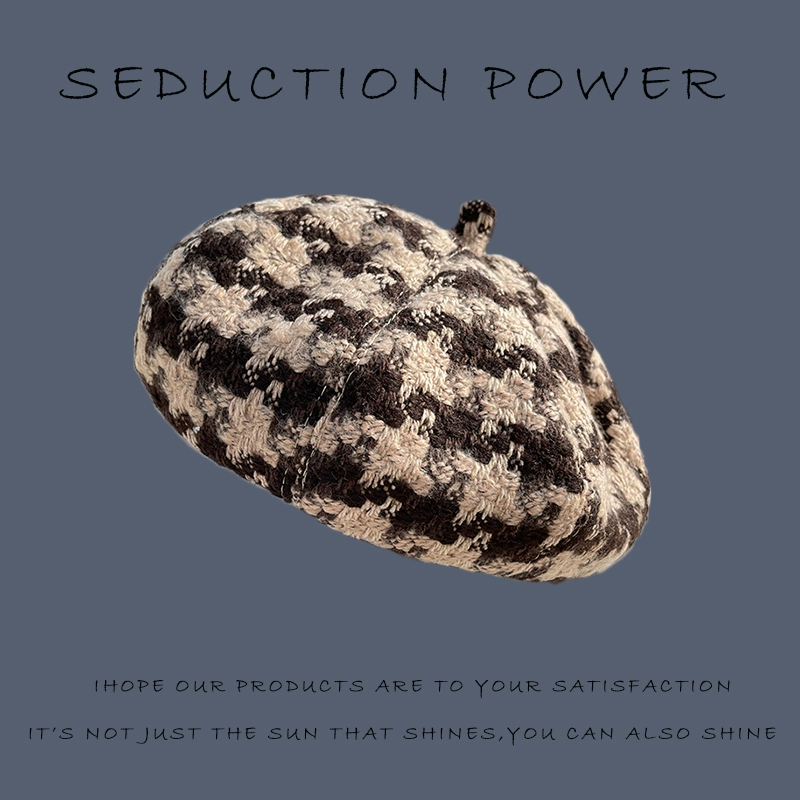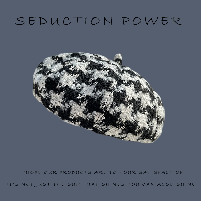 | nameOriginal | Beret women's autumn and winter wool knitted beret internet celebrity Japanese all-match fashion houndstooth octagonal painter hat |