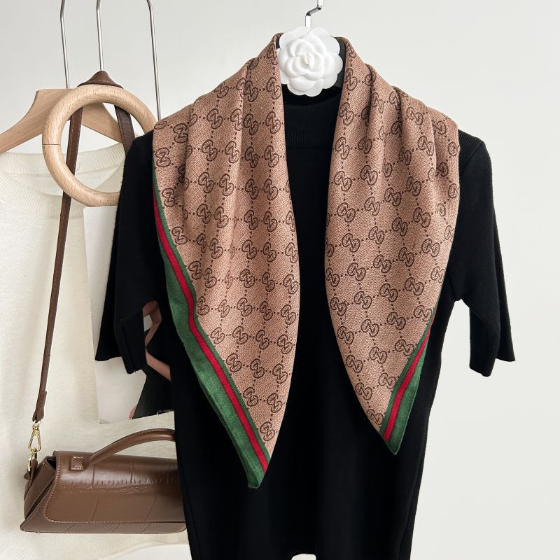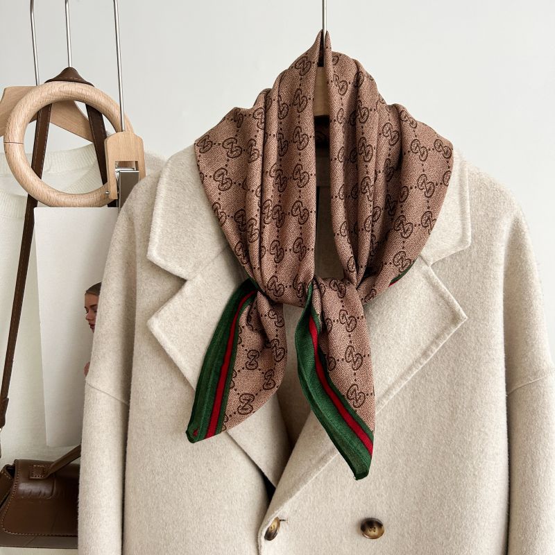| nameOriginal | Best selling new brand G letters printed high-grade cotton and linen texture 65*65cm decorative Joker velvet scarf |