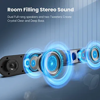 | descriptionOriginal | Powerful Sound Bar: built-in 2 full range speakers and 2 tweeter drivers, not only can output 95dB expansive audio and room-filling sound, but also bring the powerful bass thanks to the 2 bass tubes. |