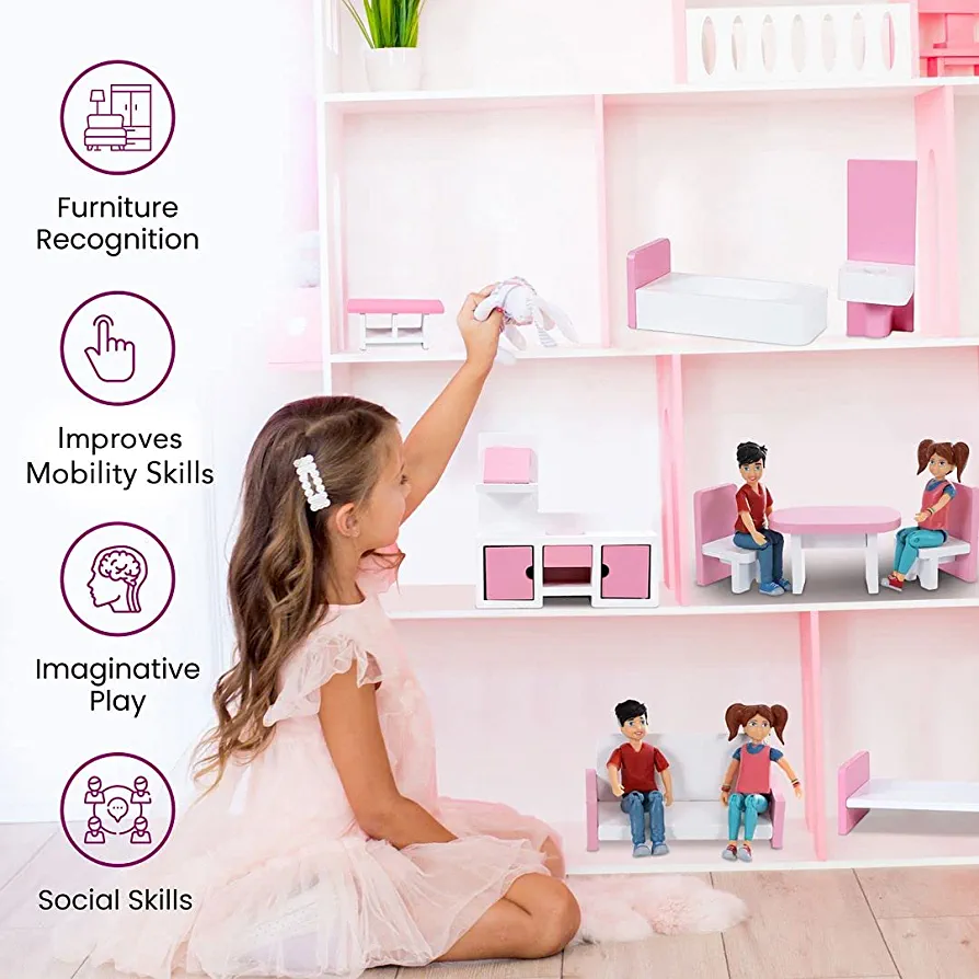 Introducing the Beverly Hills wooden dollhouse furniture set, a lifelike and realistic addition to any playroom. This set is designed with intricate details to provide a realistic experience for children during pretend play. It is perfect for interactive play, allowing kids to boost their imagination and creativity while developing their social, verbal, and fine motor skills.