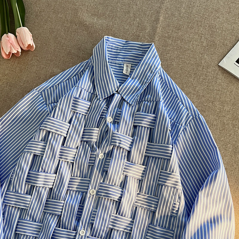 BF niche woven long-sleeved top coat striped shirt