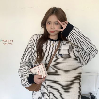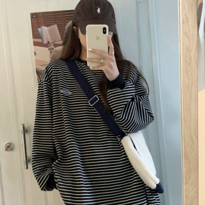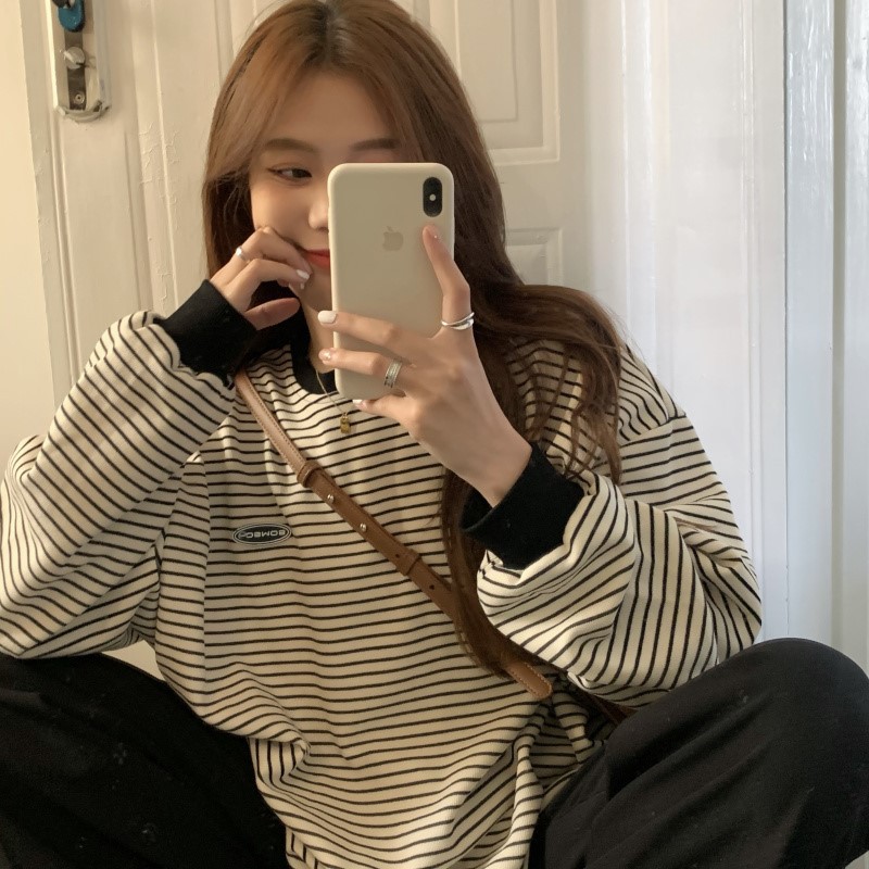 | nameOriginal | BF Style Striped Long Sleeve Sweatshirt Women's Early Autumn 2024 New Loose Design Crewneck Pullover Top Trendy Ins |