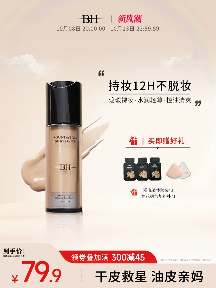 BH liquid foundation is long-lasting and does not take off makeup. Affordable for students with dry skin, oily skin and mother-in-law concealer and oil control. Official flagship store