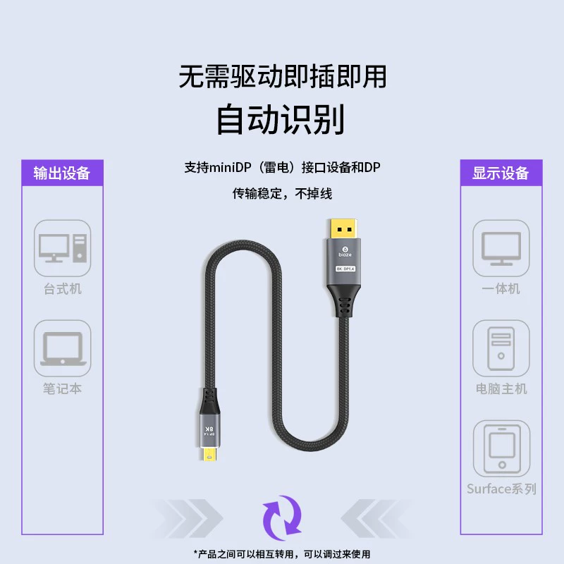 | nameOriginal | Biaz minidp to dp cable version 1.4 8K HD 4k144/2k165hz lightning adapter cable suitable for Apple |