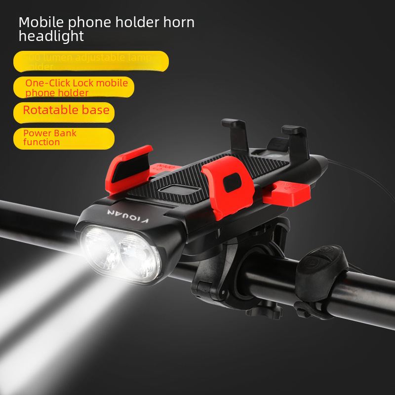 | nameOriginal | Bicycle light four-in-one headlight mountain bike horn light one-click lock mobile phone holder lighting riding equipment cross-border |