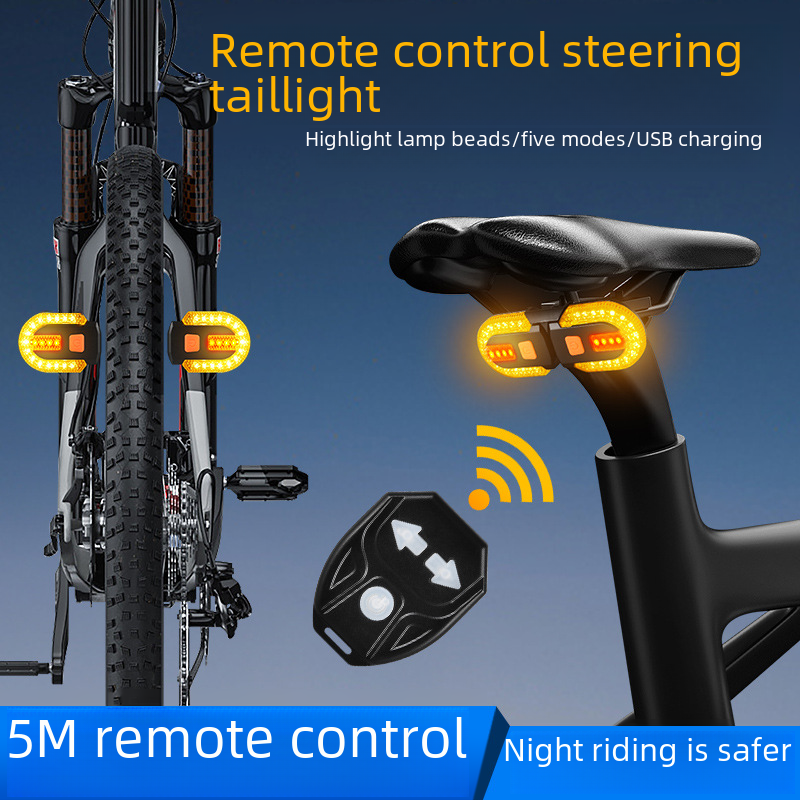 Bicycle USB charging wireless remote control steering tail light detachable mountain bike night riding warning light riding equipment