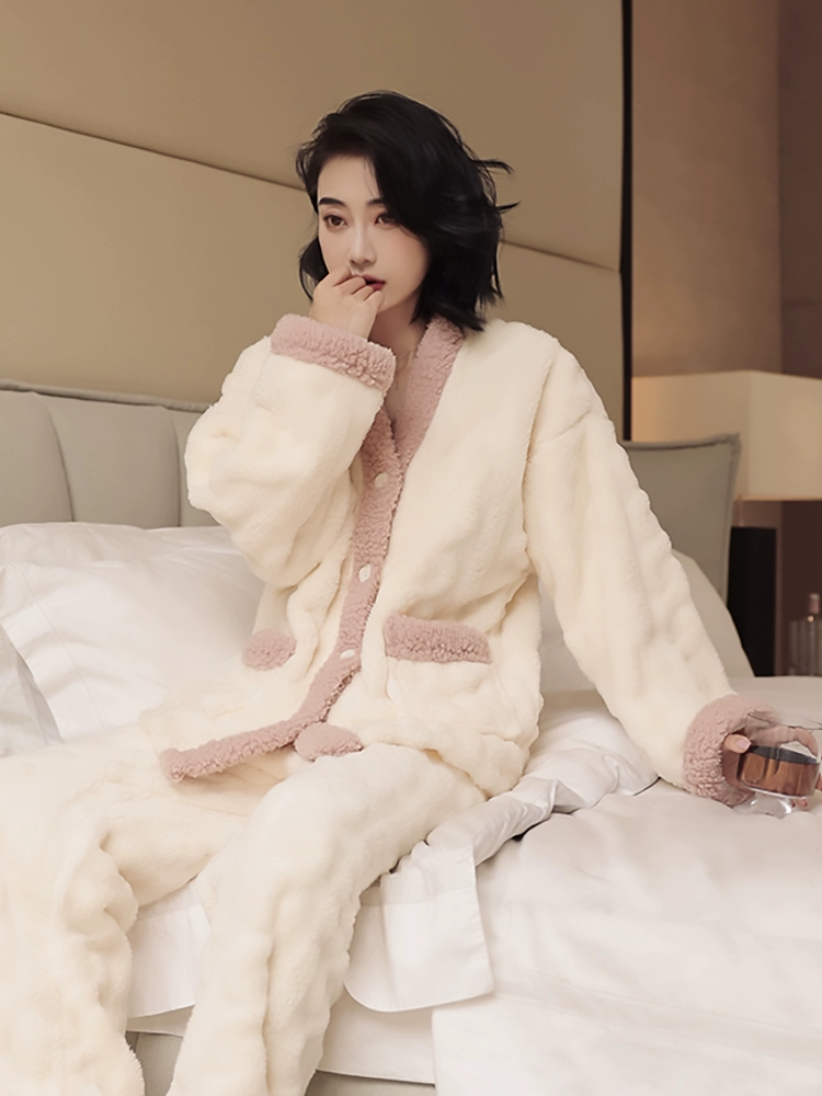 | nameOriginal | Bidong pajamas for women in autumn and winter, coral velvet plus velvet, thickened, warm, sweet, internet celebrity style, can be worn outside, home clothes set |