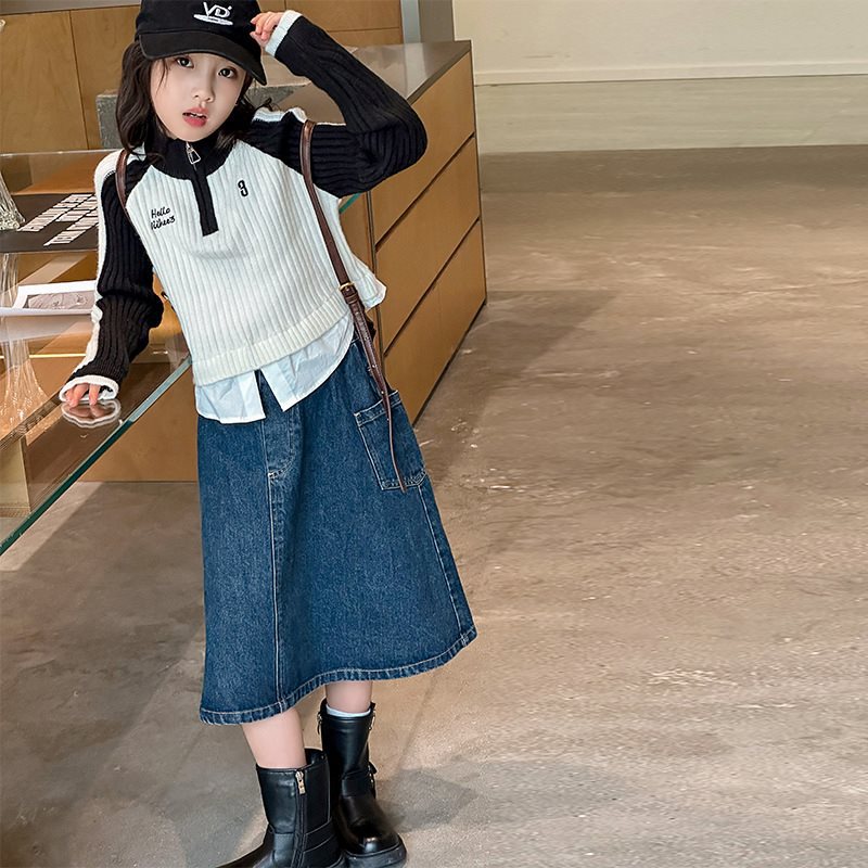 Big Boy Girl Autumn Suit Skirt Denim 2023 New Girls Fashionable Western Style Ladies 12 Years Old Women's Clothing 13 Years Old