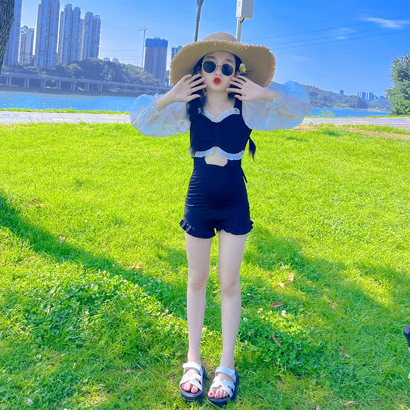 | nameOriginal | Big boy girl black 12-year-old Internet celebrity swimsuit with breast pads |