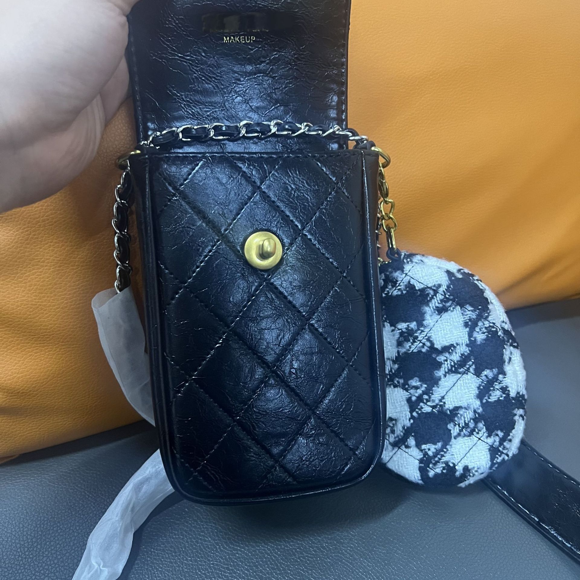| nameOriginal | Big Brand CC New Oil Wax Leather Houndstooth Points Mobile Phone Bag Counter Exchange medieval bag chain camera bag for women |