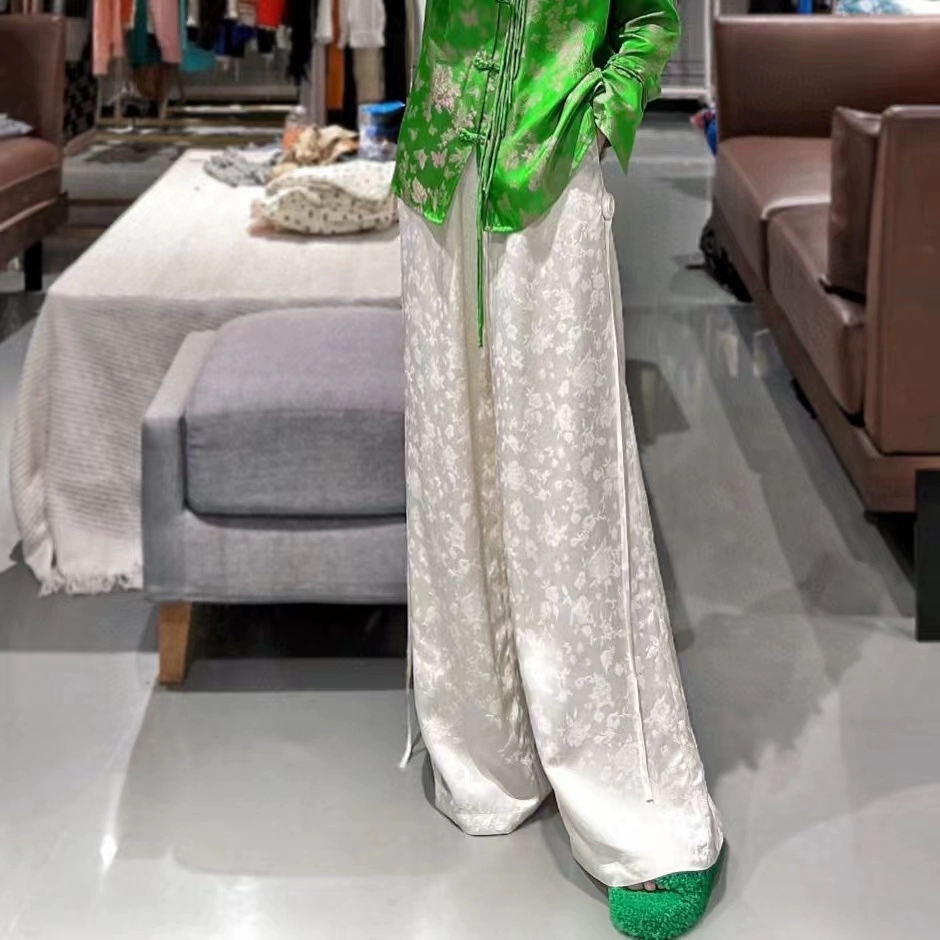 | nameOriginal | Big brand cut label imitation silk high waist thin wide leg pants |