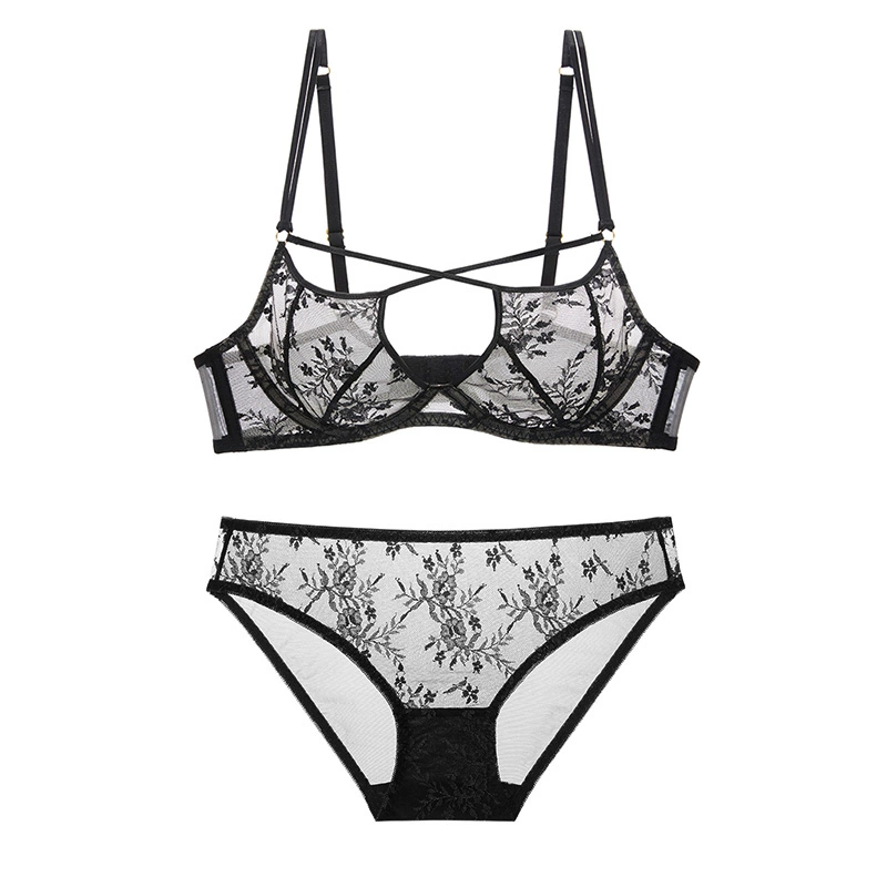 | nameOriginal | Big breasts appear smaller, ultra-thin breathable mesh women's underwear, sexy pure desire lace bra set, thin strap black bra |
