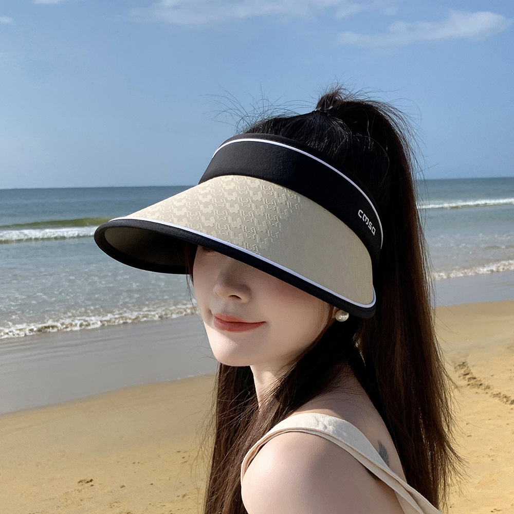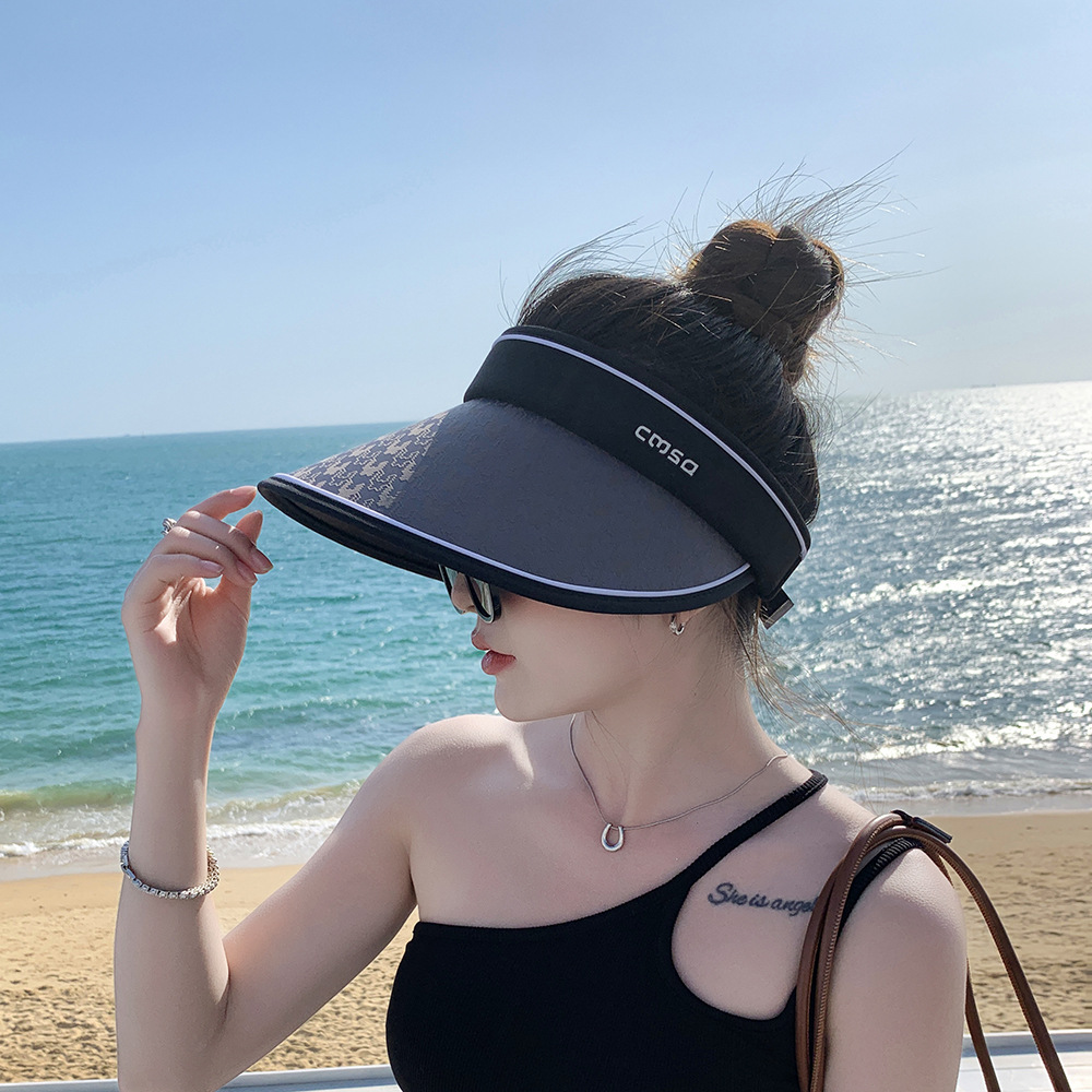 Big Brim Empty Top Hat Summer Seaside Beach Sun Hat Outdoor Foldable Sunscreen Hat Women's Printed Sunshade Hat