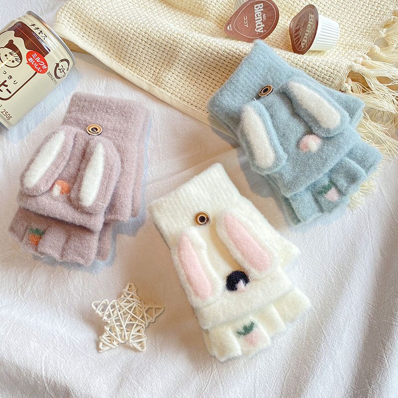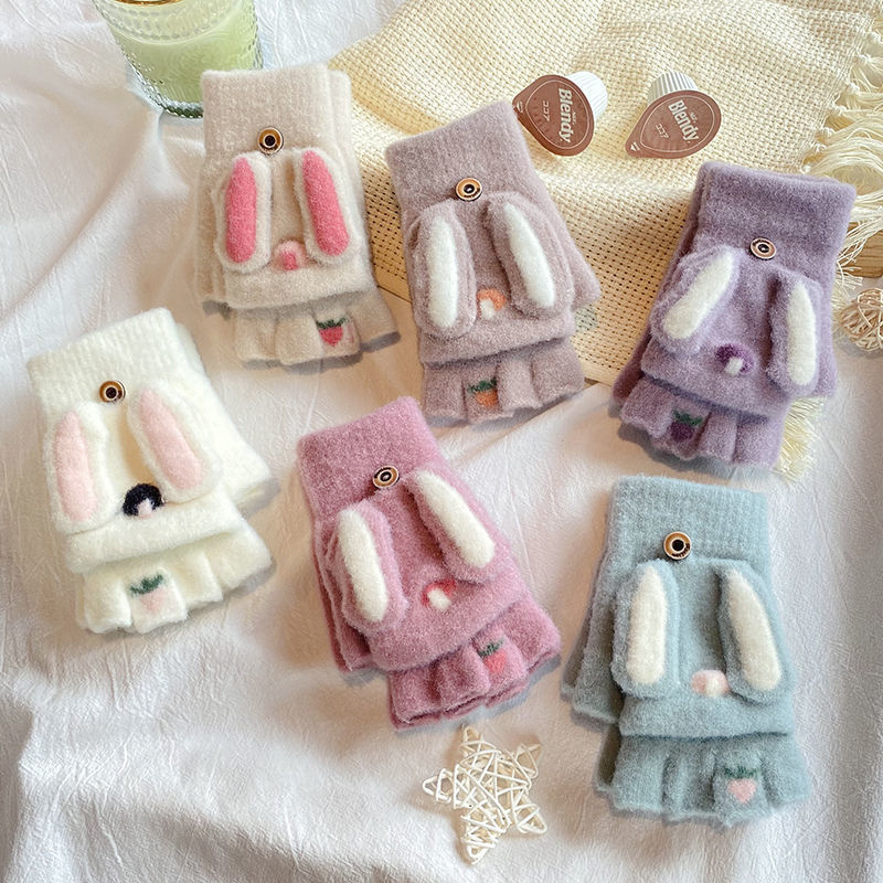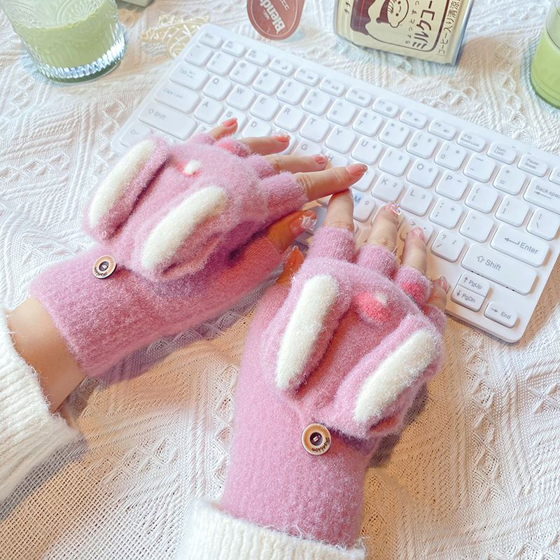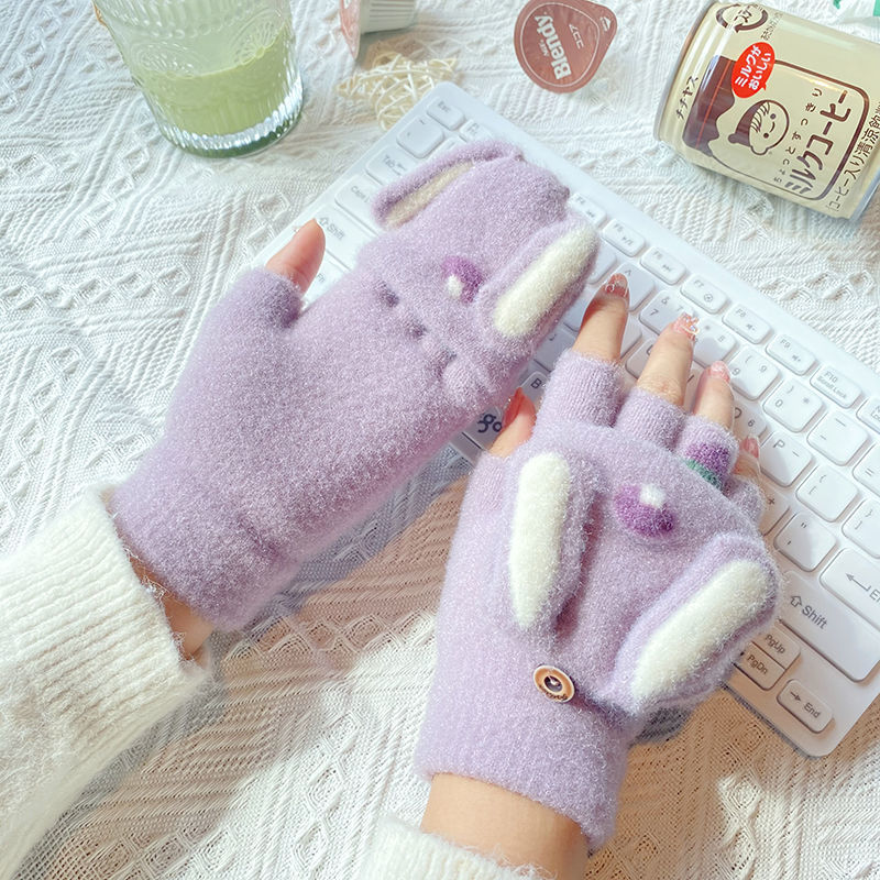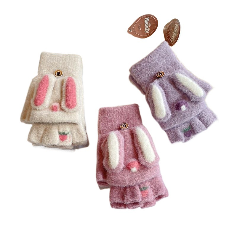 | nameOriginal | Big children's writing gloves women's half-finger flap dual-purpose students open finger rabbit ear mink velvet winter wholesale |