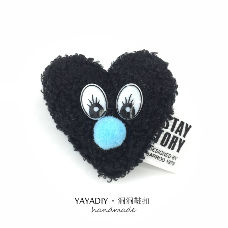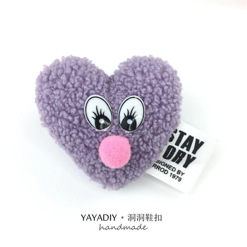Big-eyed plush love shoe buckle autumn and winter clogs diy cute versatile shoe buckle upper accessories fashion shoe flower