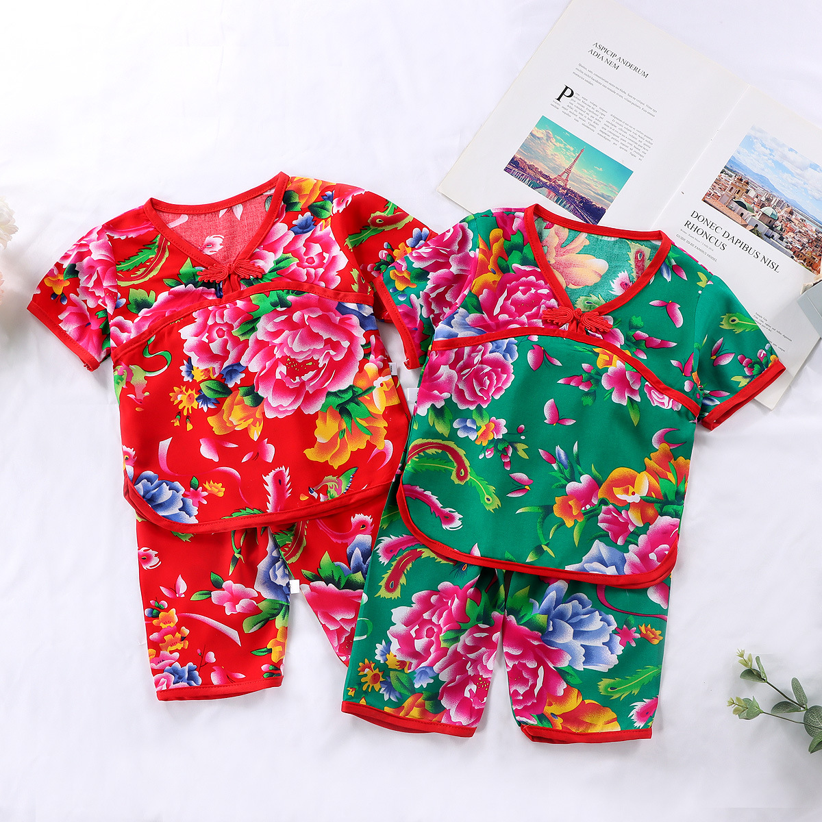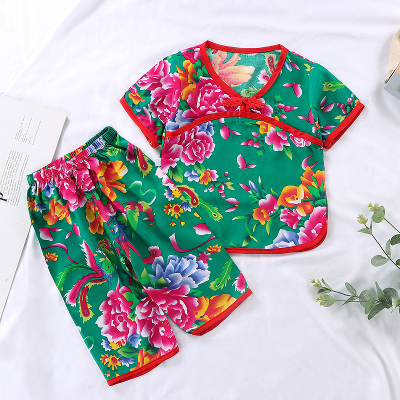 | nameOriginal | Big Flower Baby Men's Internet Celebrant Cotton Silk Home Clothes Girls' Thin Capri Pants Northeast Children's Short-sleeved suit Pajamas Summer |