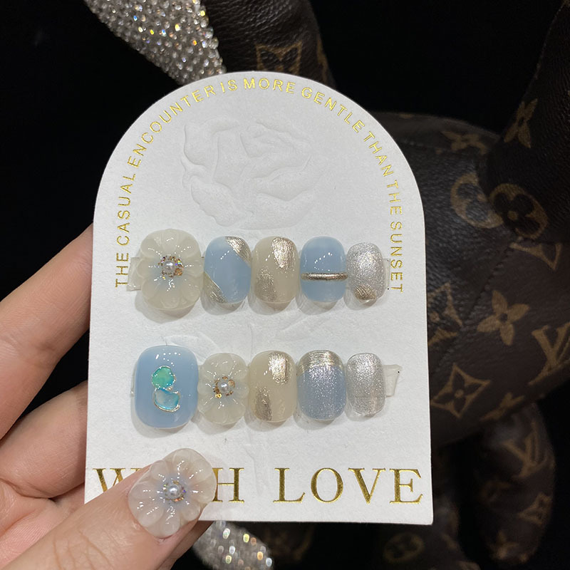 | nameOriginal | [Big Flower manicure] Hand-worn nail gentle temperament hand-painted three-dimensional flower Super fairy white spring and summer short Square round |