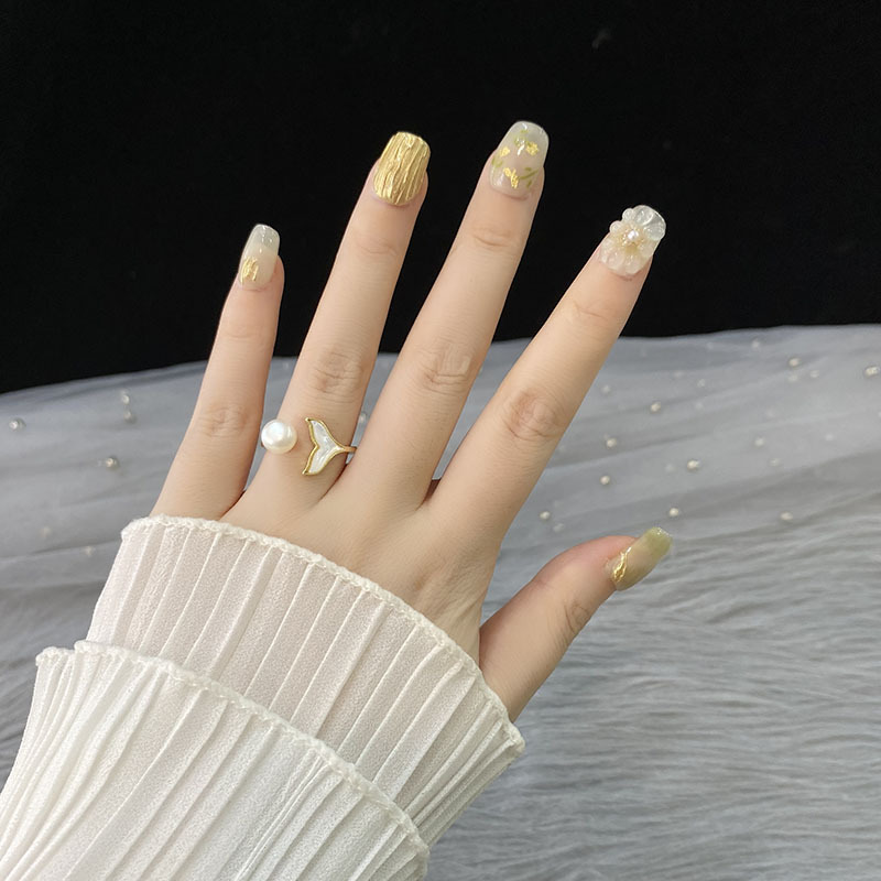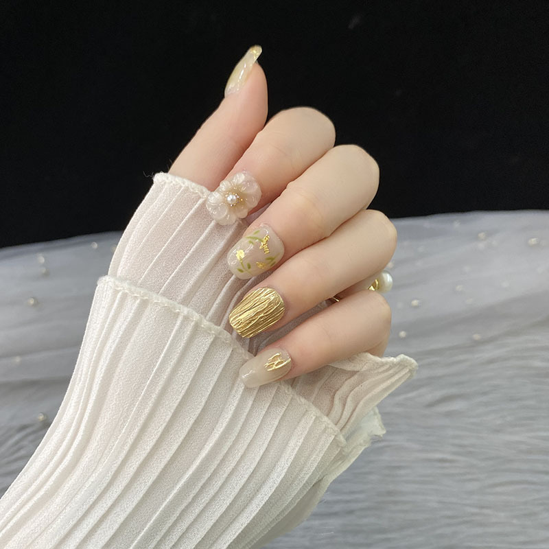 | nameOriginal | [Big Flower manicure] Hand-worn nail gold foil three-dimensional flower spring and summer elegant white high-grade new Chinese Square |