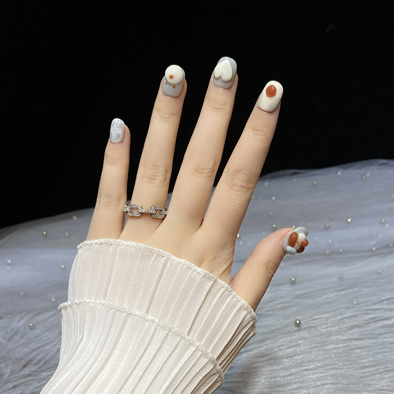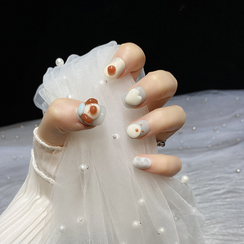 | nameOriginal | [Big Flower Nail Art] Hand-worn Armor Blue Three-dimensional Melancholy Puppy Cartoon White Short Square New Spring and Summer |