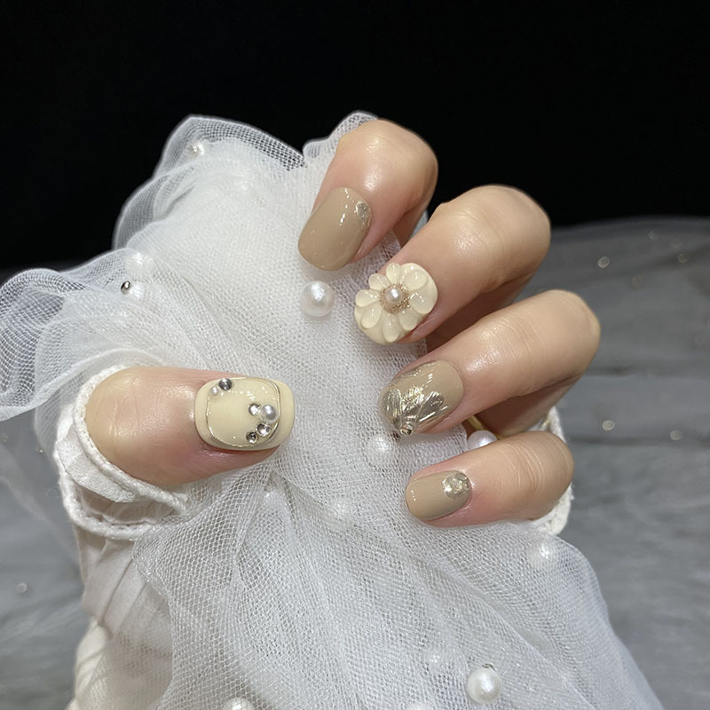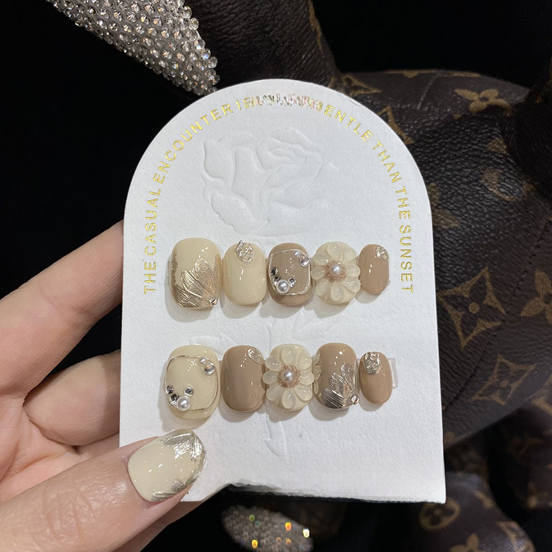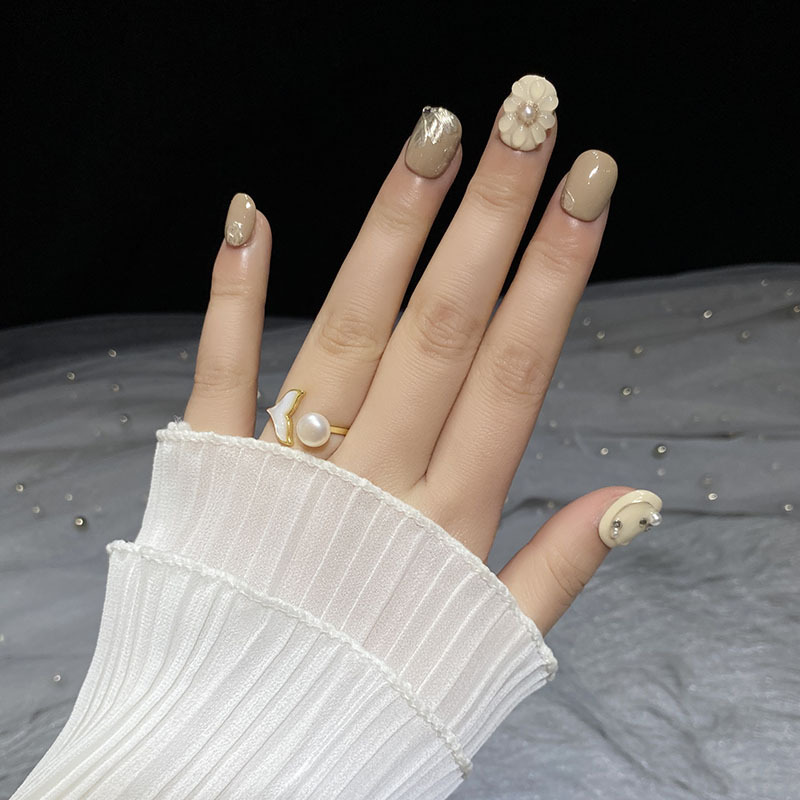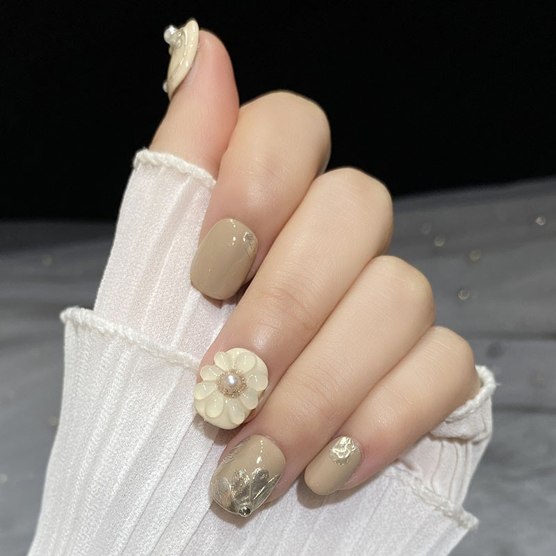 | nameOriginal | [Big Flower Nail Art] Hand-worn Armor Hand-painted Three-dimensional Flower Milk Tea Color Advanced Sense Gentle Milk Coffee Short Square |
