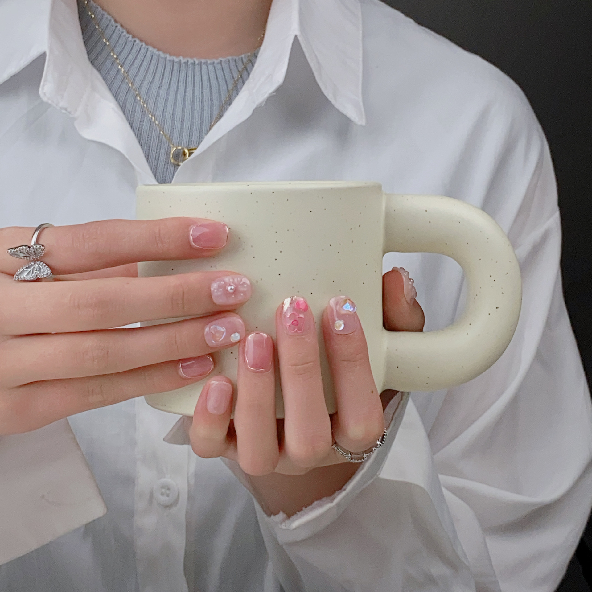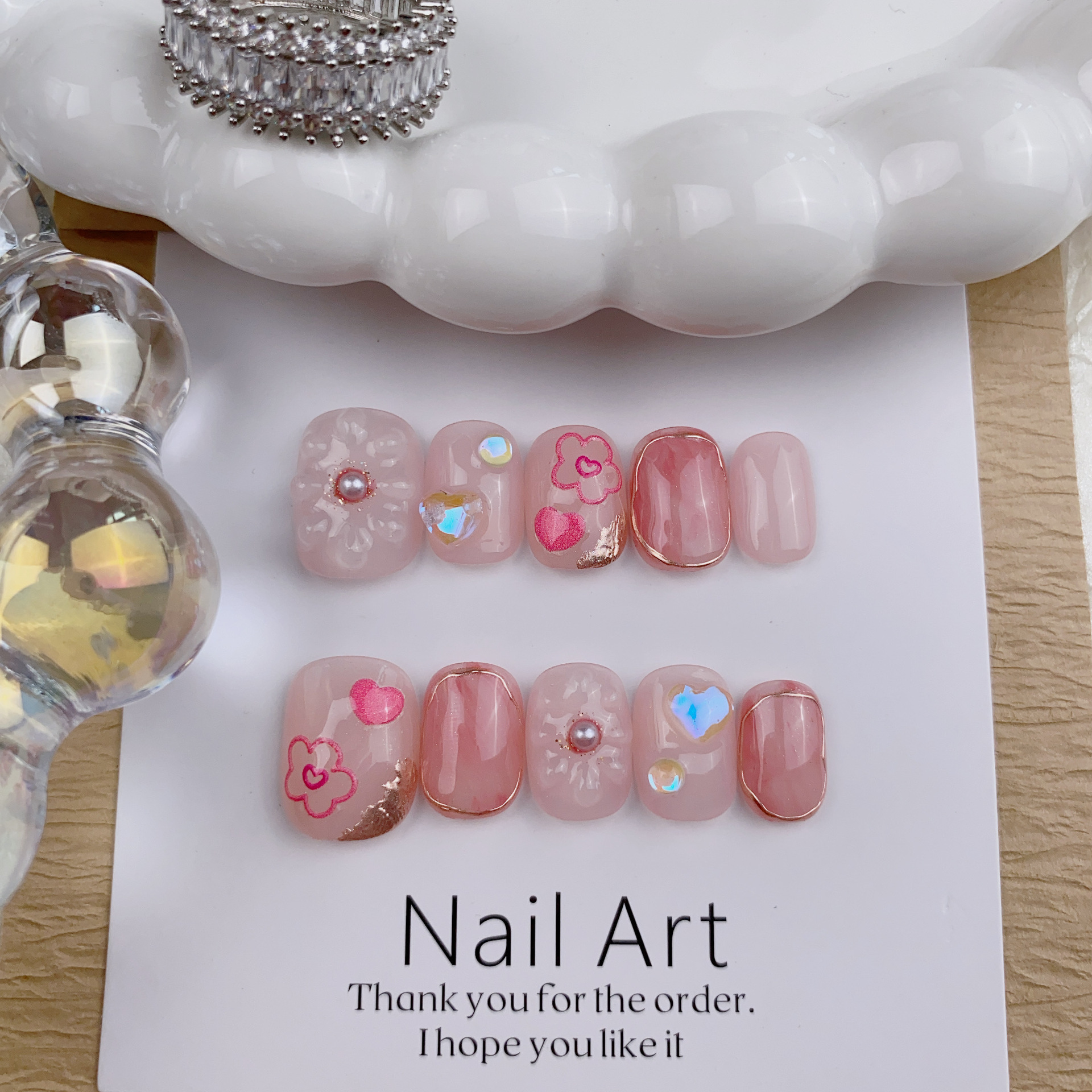 | nameOriginal | [Big Flower Nail Art] Hand-worn Armor Hand-painted White Small Flowers Advanced Wearable Nail Art Short Round Armor |