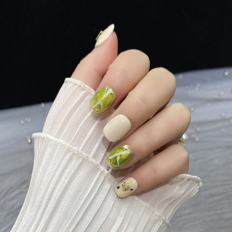 | nameOriginal | [Big Flower nail art] Hand-worn armour hand-painted vignetting Jade Lake pure color gentle temperament short square high-grade |