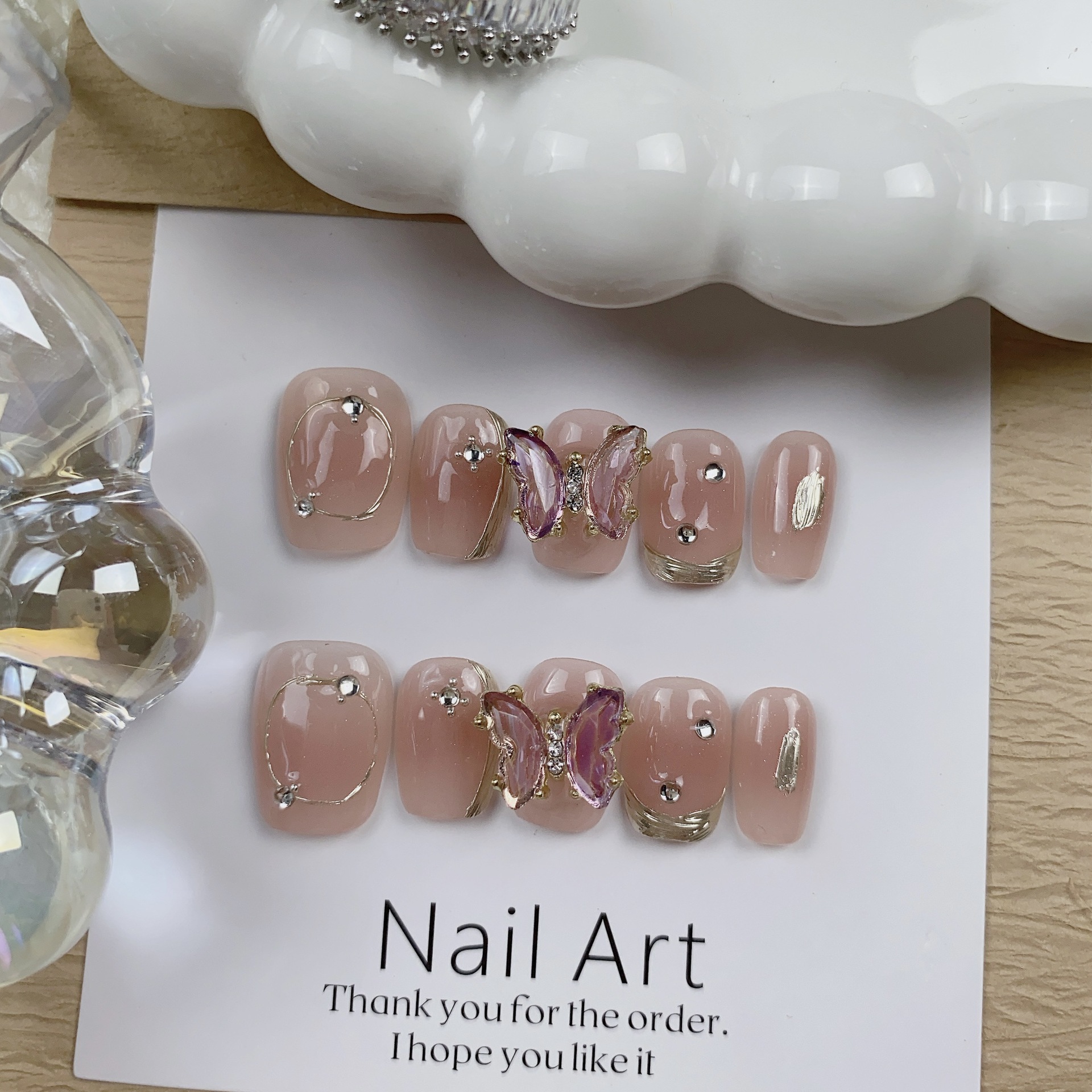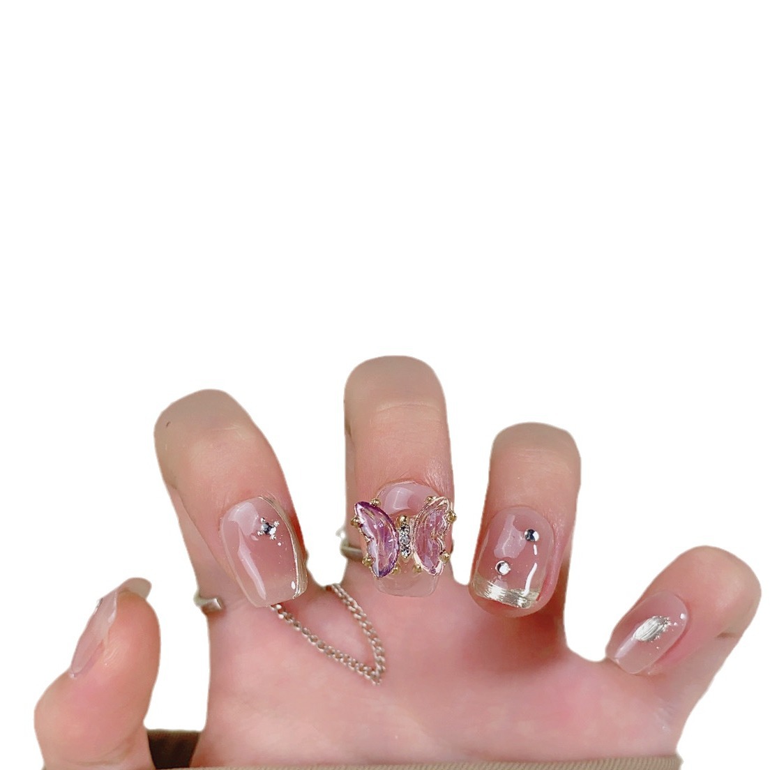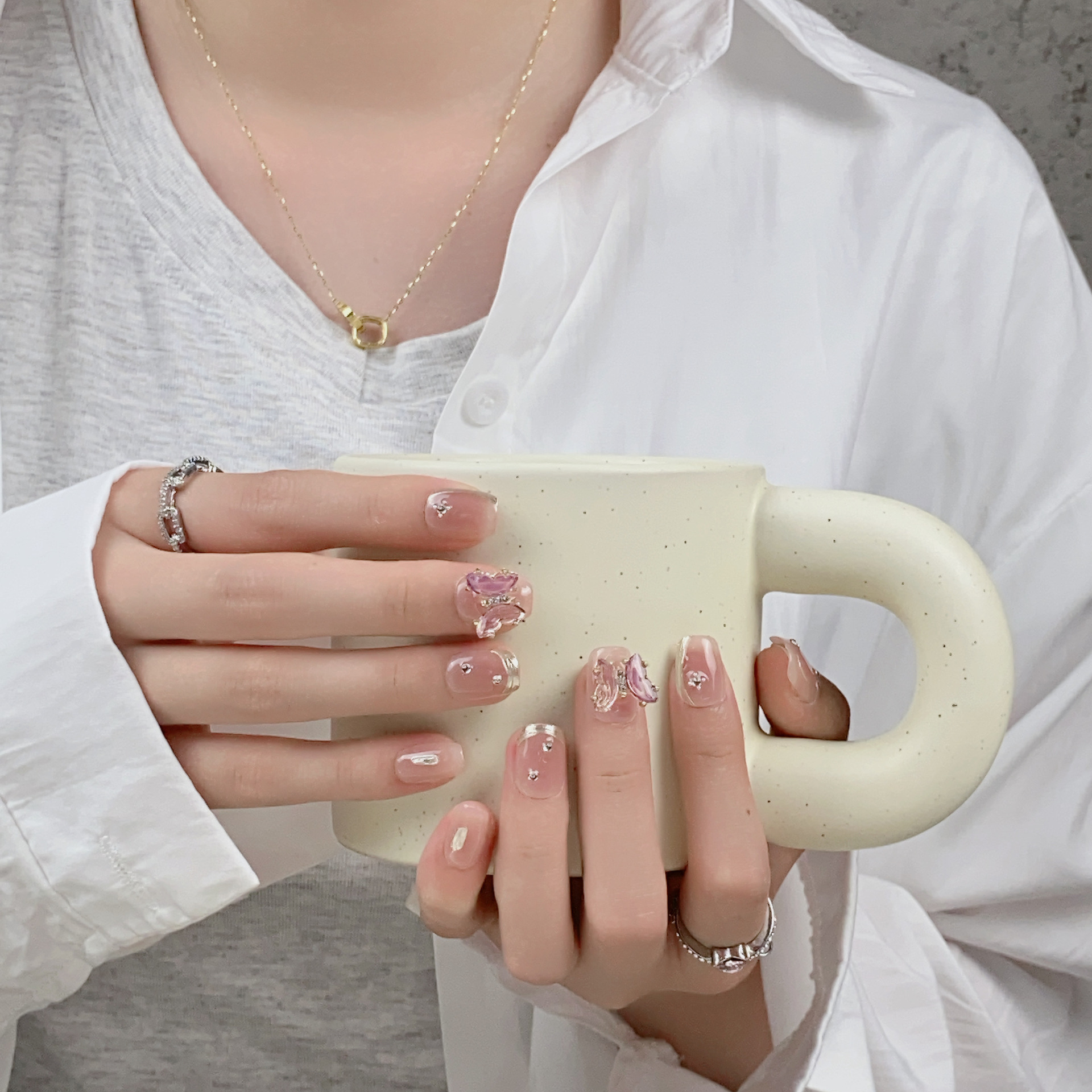 | nameOriginal | [Big Flower Nail Art] Hand-worn French Romantic Butterfly Love Butterfly Pink Nail Art Patch Removable Short Square |