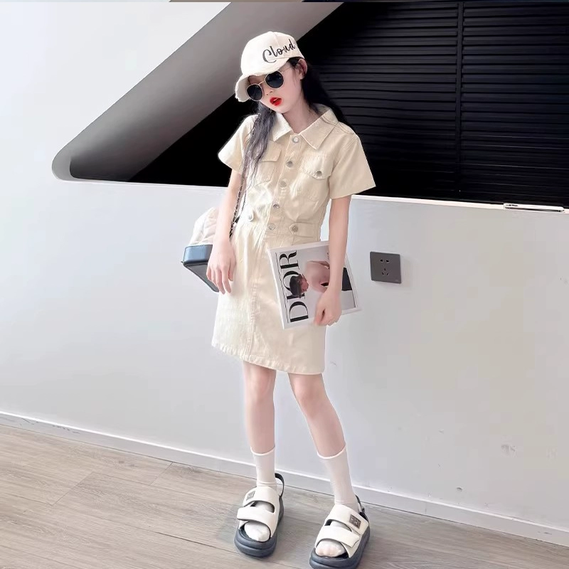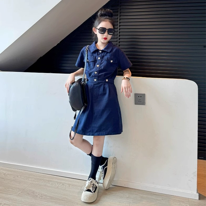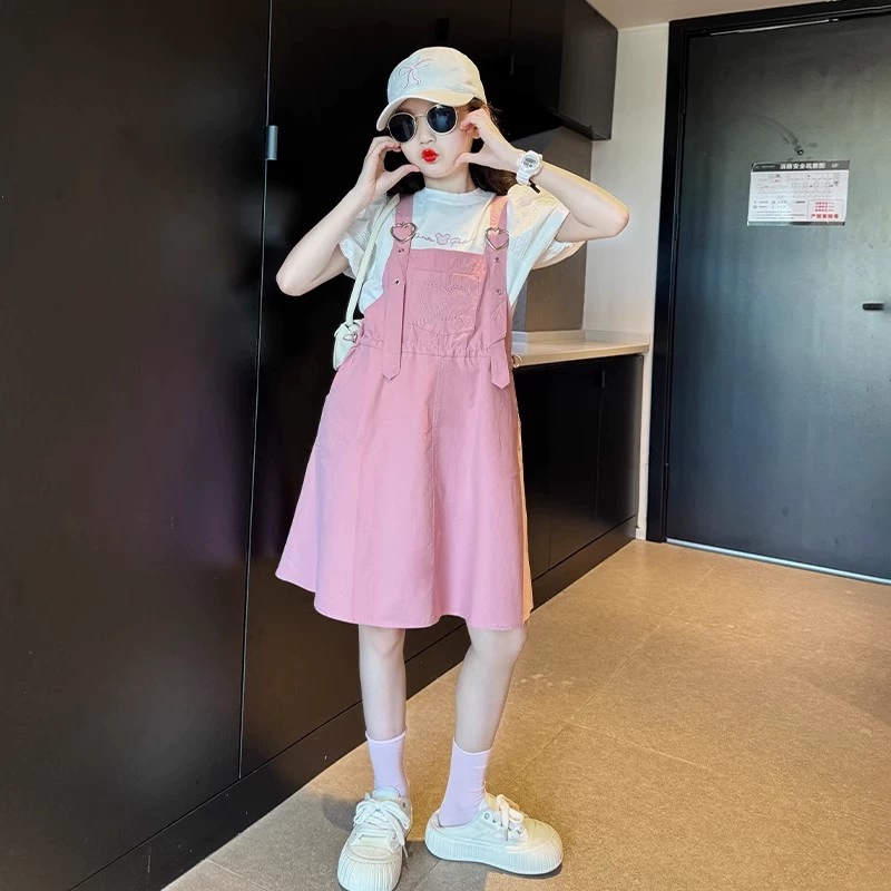 | nameOriginal | Big girl's summer short-sleeved denim suspender skirt fake two-piece |