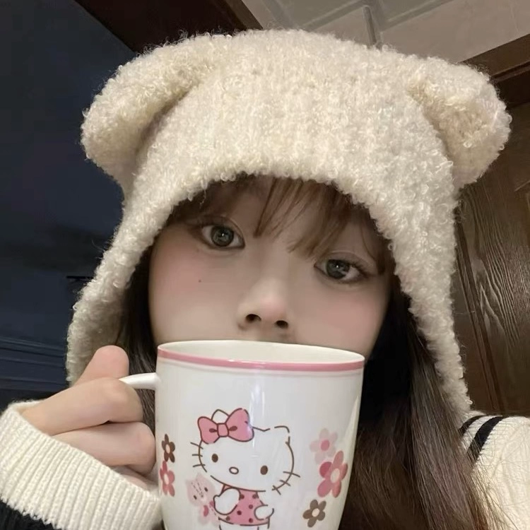 | nameOriginal | Big head size cute teddy plush bear ears woolen hat winter warm ear protection knitted hat plush hat for women |
