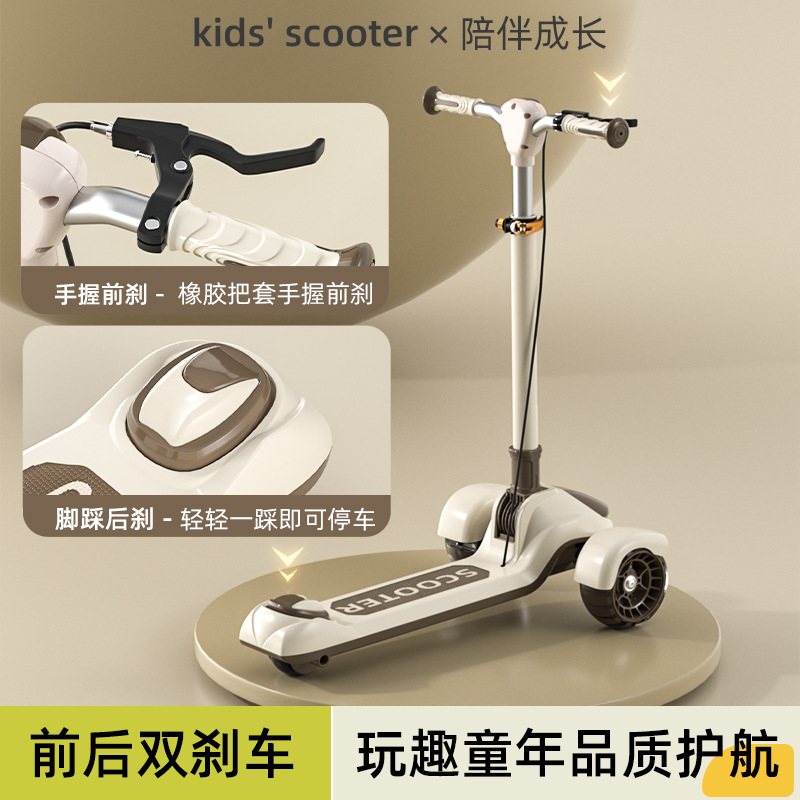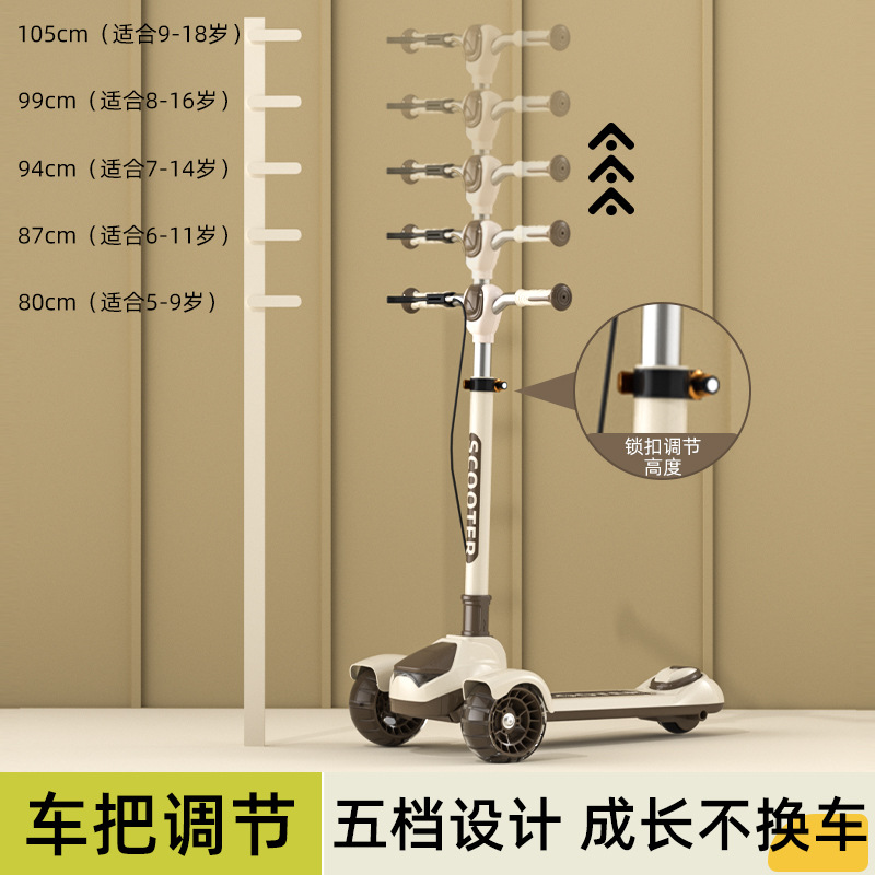 Big Kids Scooter Flash Teenager Single Foot Scooter Three Wheel Handbrake Large Foldable Scooter