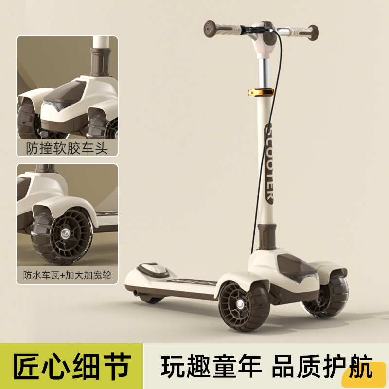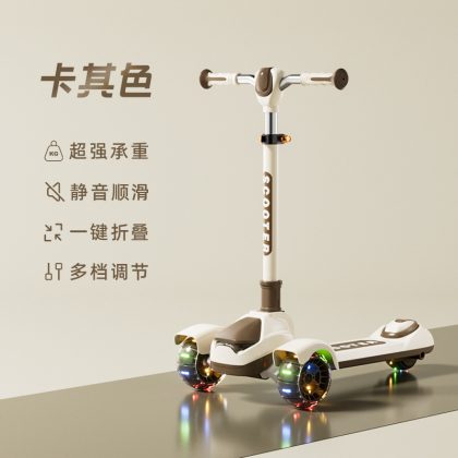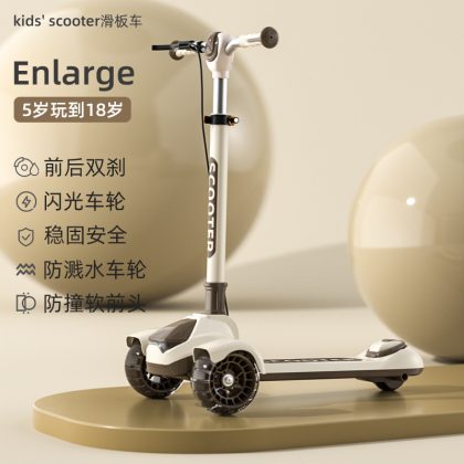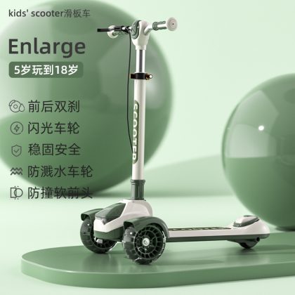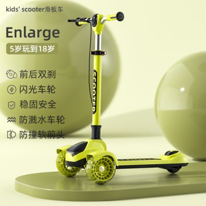 Big Kids Scooter Flash Teenager Single Foot Scooter Three Wheel Handbrake Large Foldable Scooter