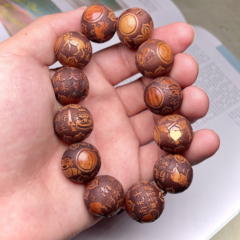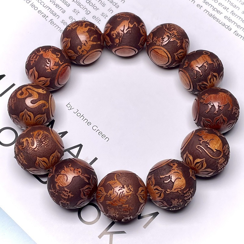| nameOriginal | Big Leaf Huanghua Pear Carved Twelve Zodiac Bodhisattva Edition National Style Buddha Bead Wen Play Bracelet Wholesale Men's and Women's Jewelry |
