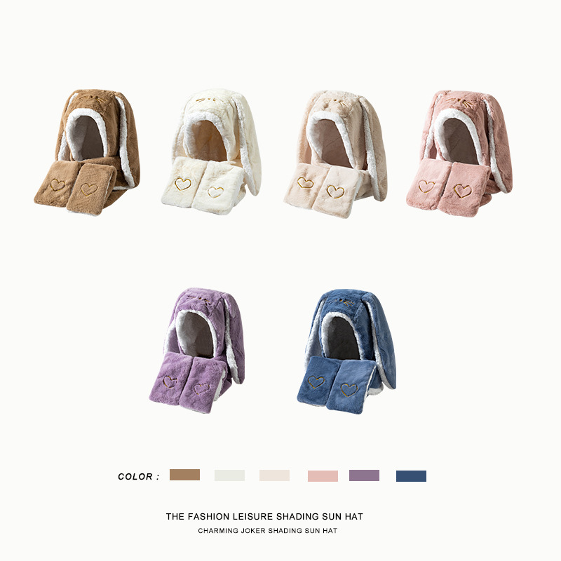 | nameOriginal | Big Rabbit ears plush thickened extra-large cold-proof warm women's winter cute hat scarf gloves integrated three-piece set |