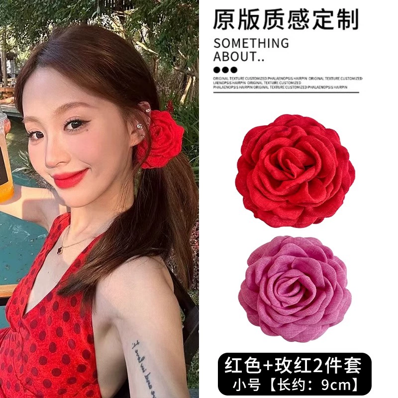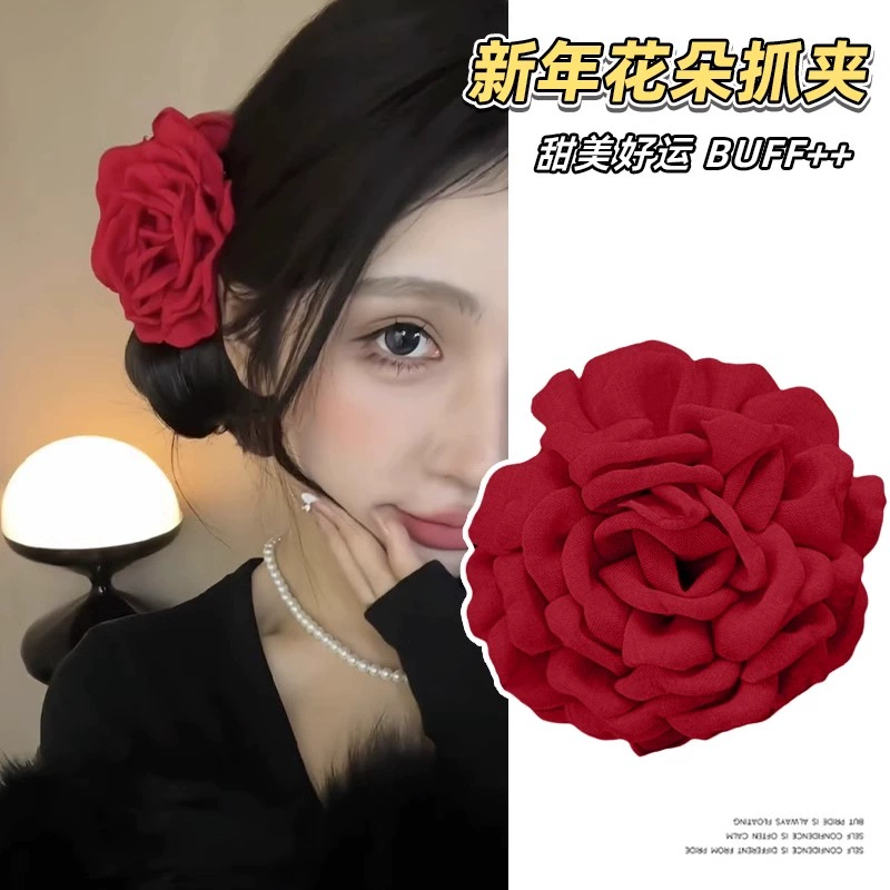 | nameOriginal | Big red flower rose flower clip high-end flower hairpin back of the head temperament hair catcher flower shark clip headwear |