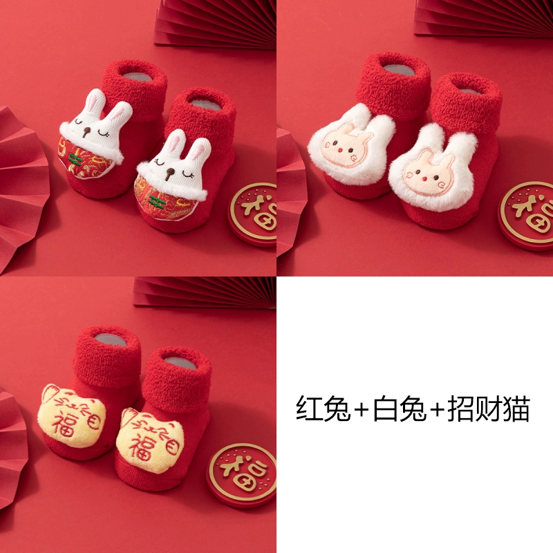 | nameOriginal | Big red thickened warm one-year-old and full-moon New Year socks |