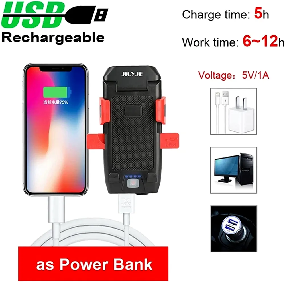 4 in 1 Bicycle Front Light USB Chargeable Bike Horn Phone Holder Cycling Flashlight MTB Power Bank T6 Headlight Bike Accessories