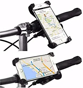 Bike phone holder for iPhone and Samsung with adjustable universal mount.